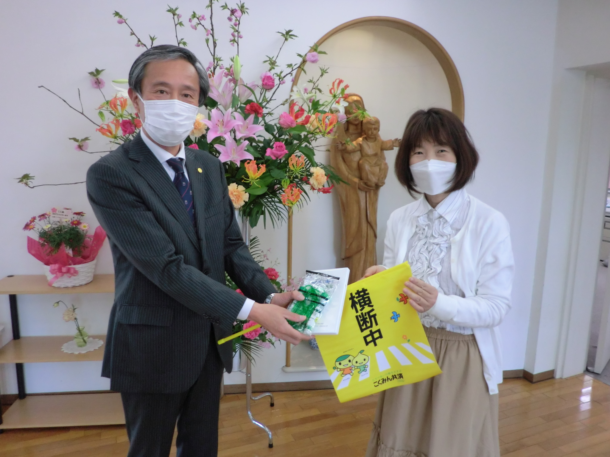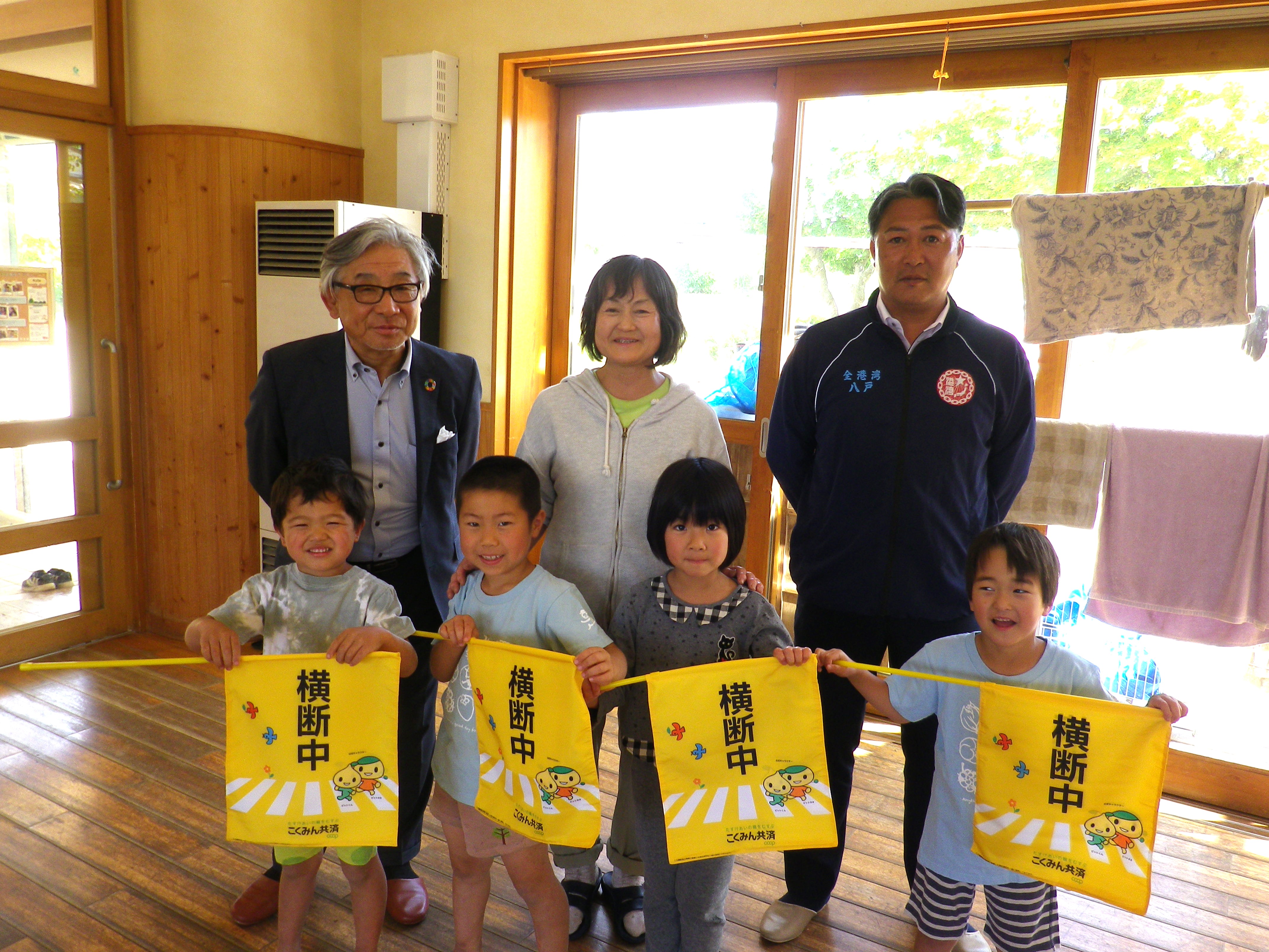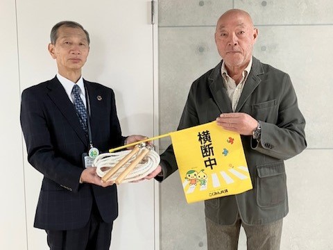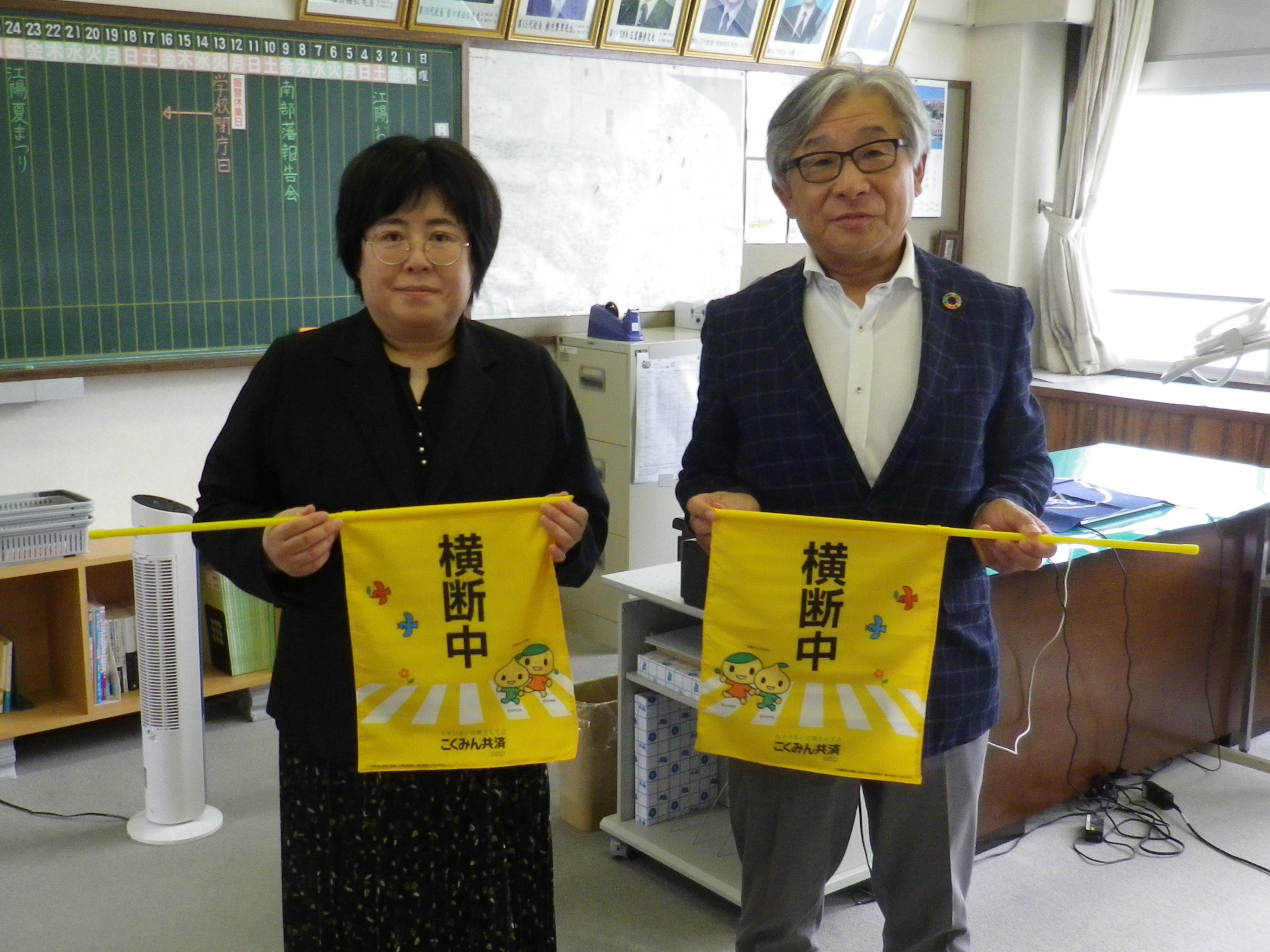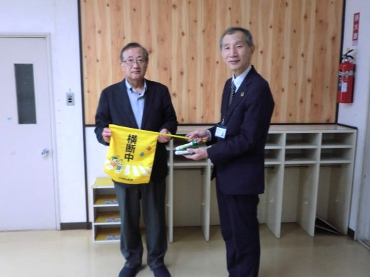 「地区によってはまだまだ横断旗の数が足りていないこともあり、また予算的にも厳しい状況であるため、今回の寄贈はありがたい」と感謝の言葉をいただきました。