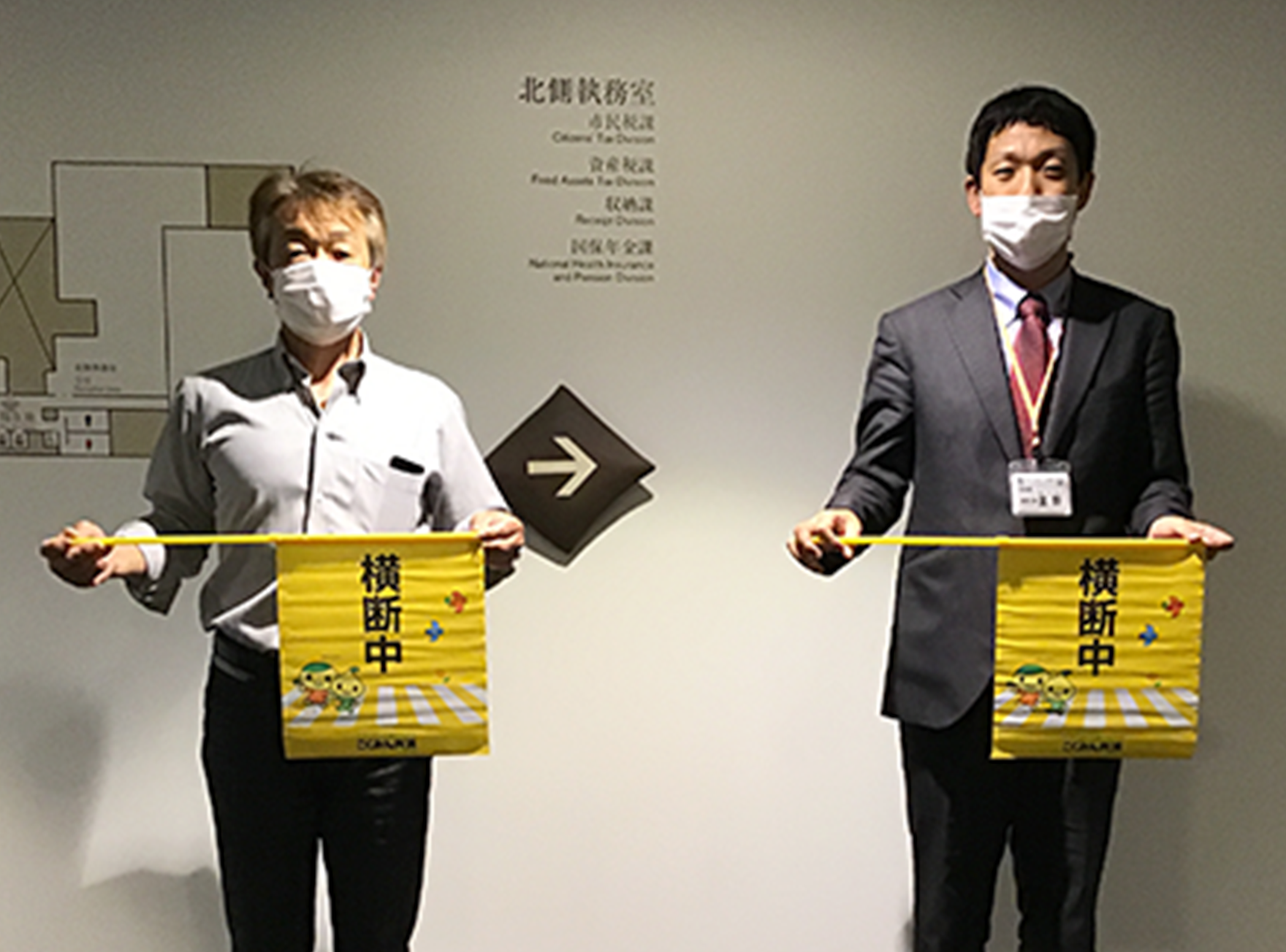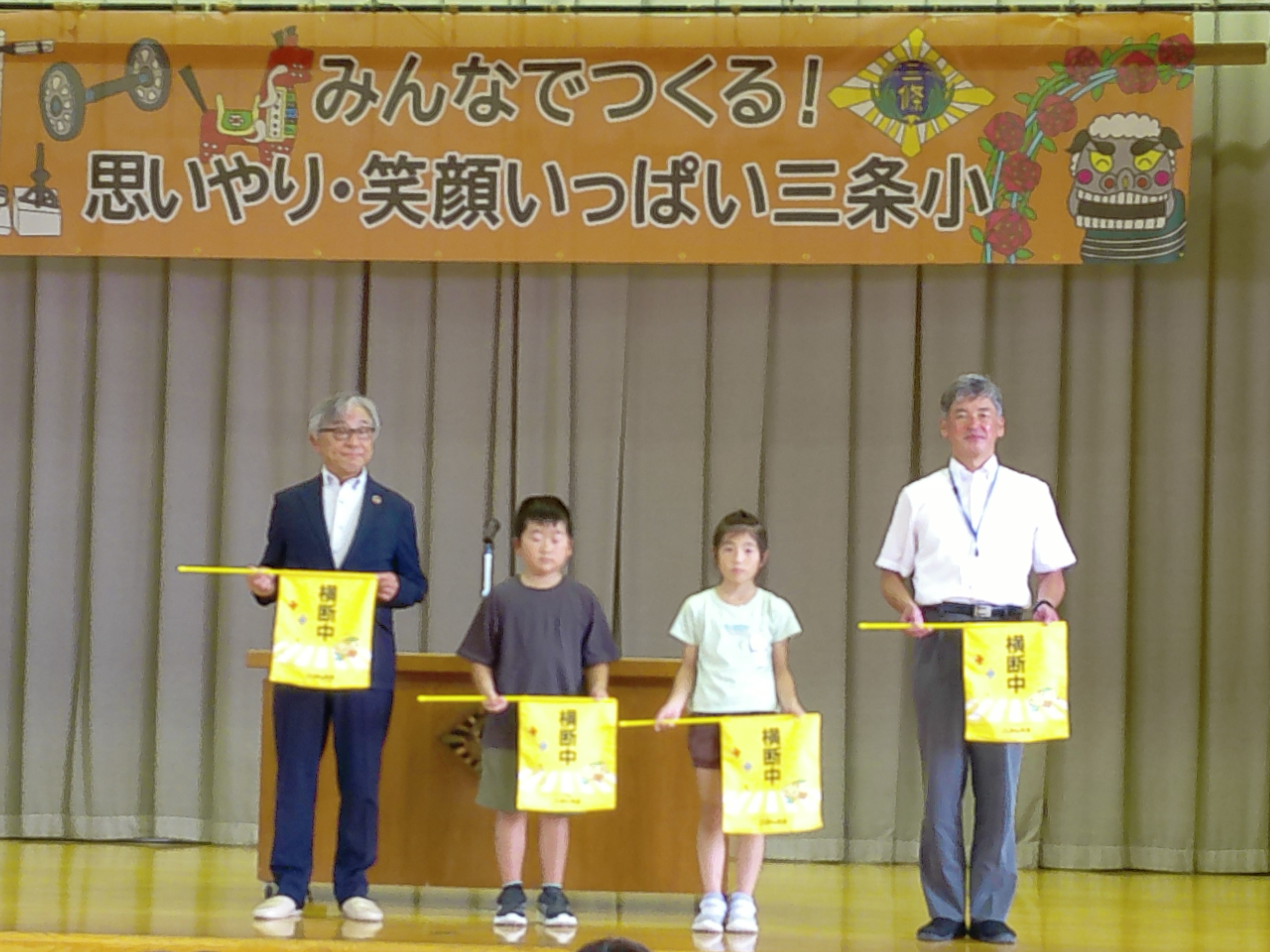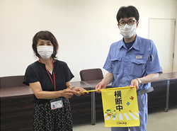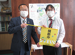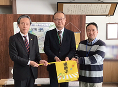 寄贈式の中で実際に横断旗を使用している写真を拝見し、本取り組みの意義を実感しました。