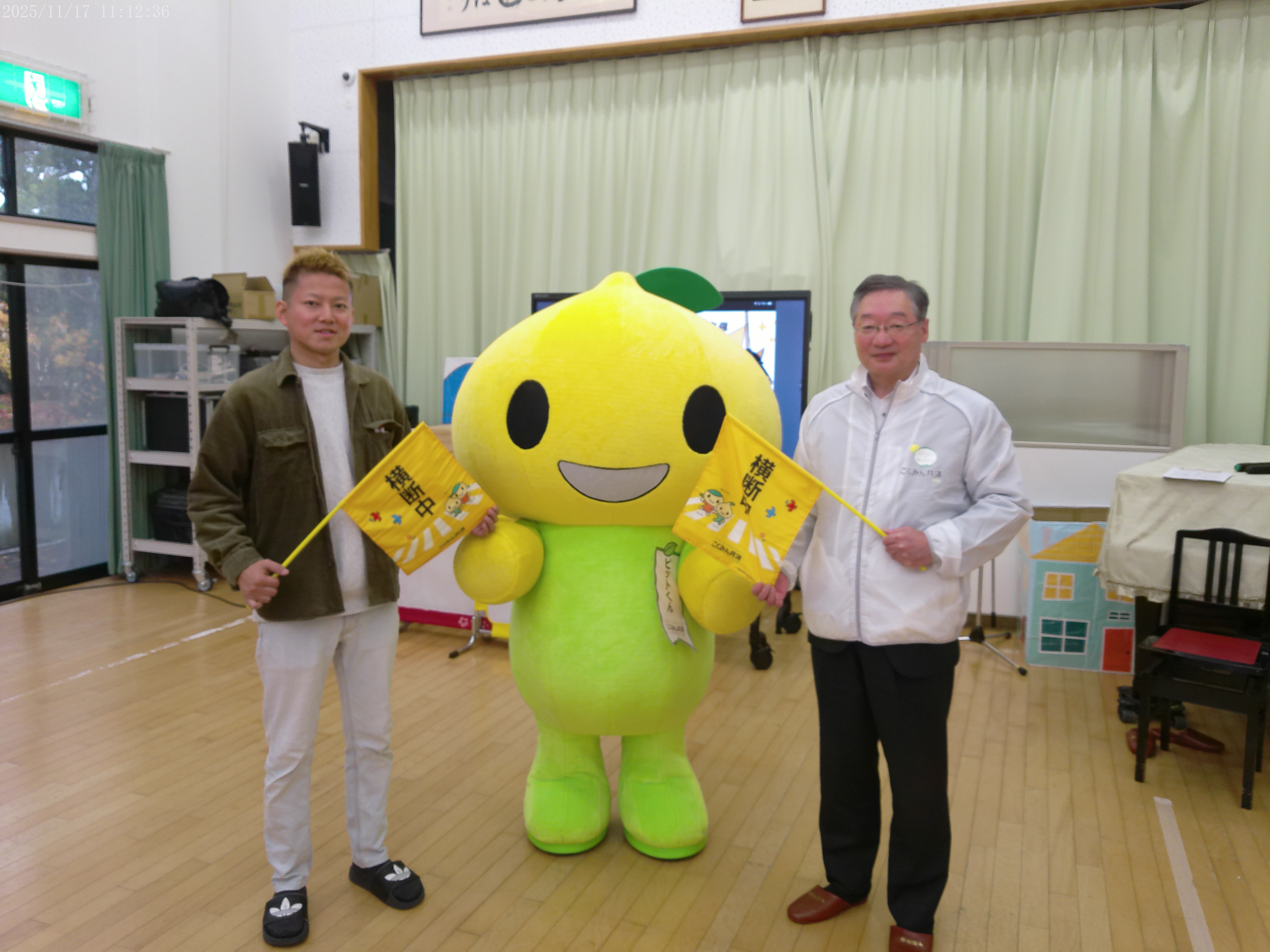 「未来ある子どもたちを交通事故から守ろう」というこのプロジェクトの趣旨をご理解いただき、活用いただけると思います。贈呈式には当推進本部代表委員や地元市職労の方にもご参加いただきました。