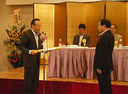 寄贈式当日は町内交通安全関係団体、協力団体の代表者に出席いただきました。岩泉町長から岩手推進本部に対し、感謝状をいただきました。