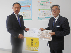 糸魚川市へ横断旗300本を寄贈しました。寄贈した横断旗は、糸魚川市内の交通安全の取り組みに活用いただきます。