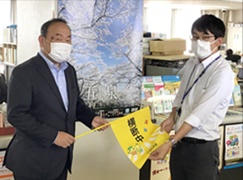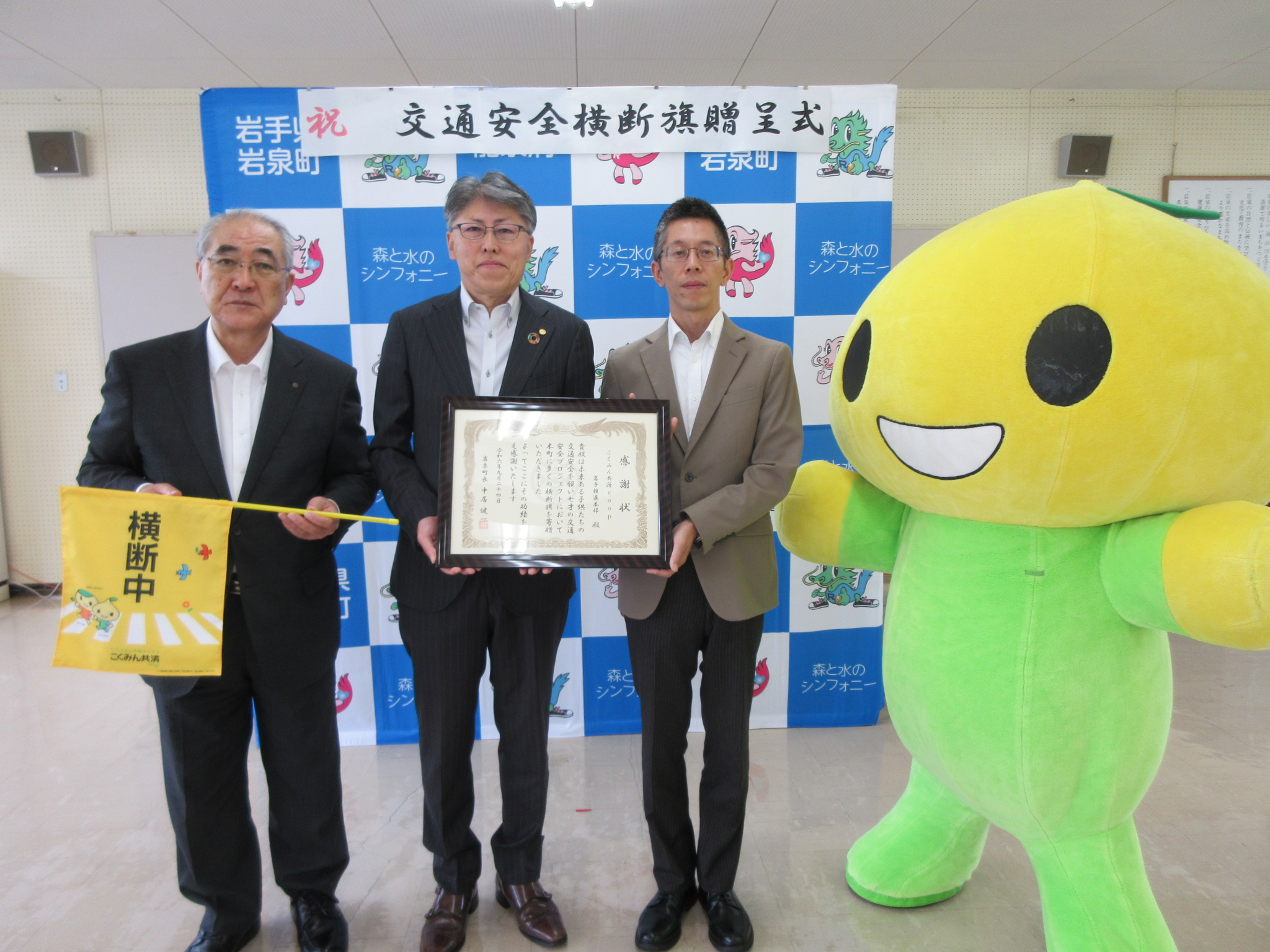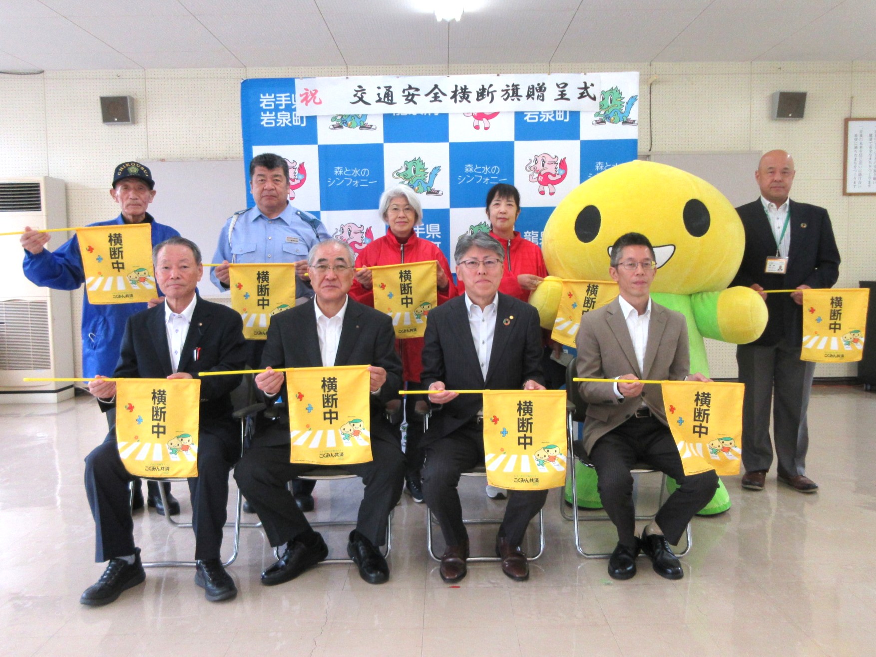 岩泉町へ横断旗300本を寄贈しました。寄贈した横断旗は、町内交通安全関係団体、学校等に配布され、子どもや高齢者、住民の事故防止に活用いただきます。