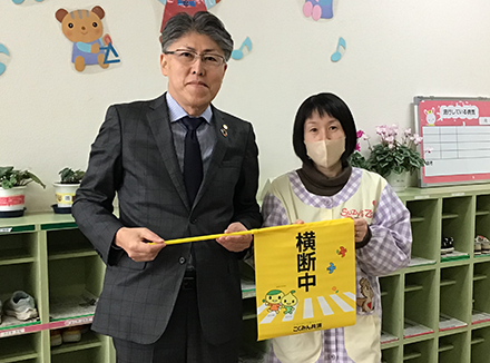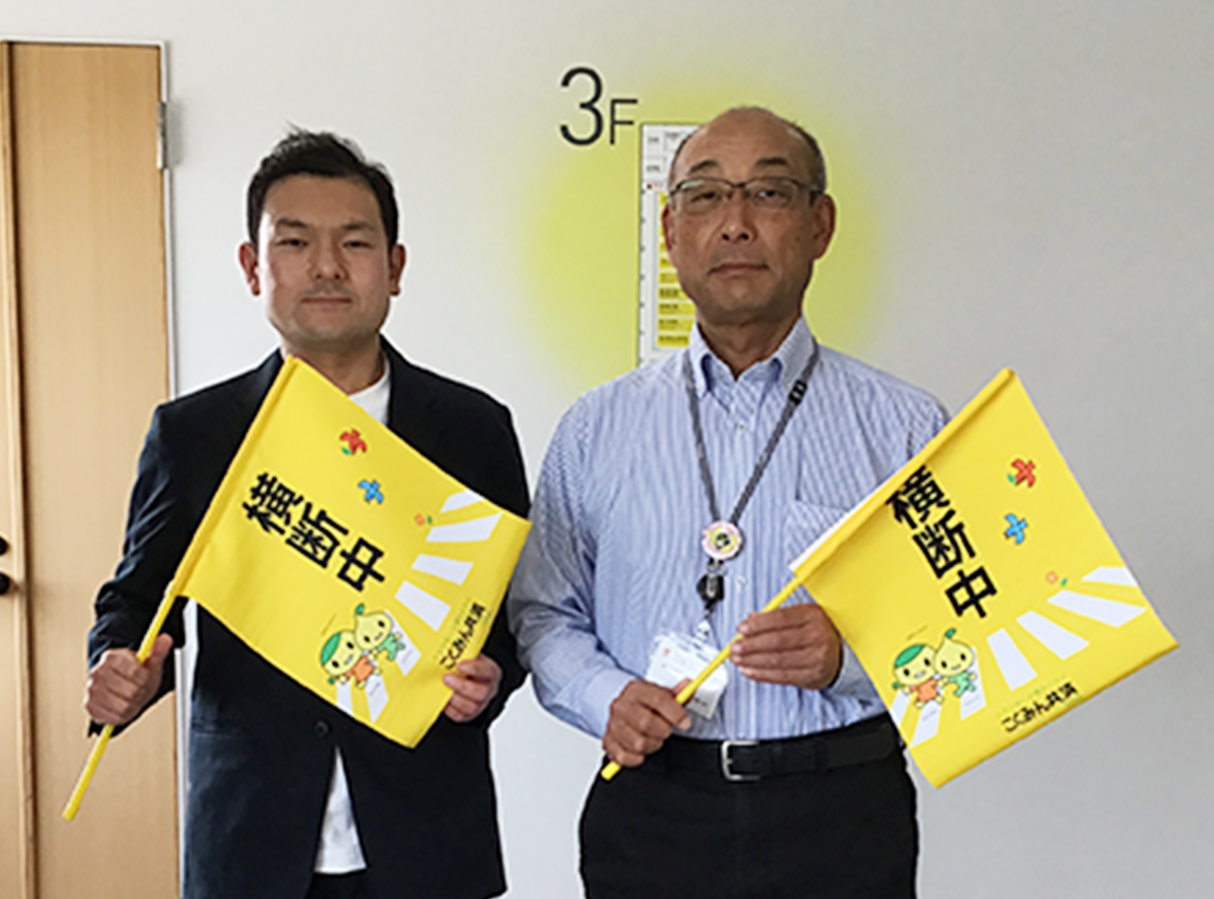 2019年に引き続き横断旗を寄贈することで、継続的な啓発活動ができていると思います。各地区では新学期にあわせて活用いただいていると聞いており、子どもたちの交通安全に役立っている実感があります。