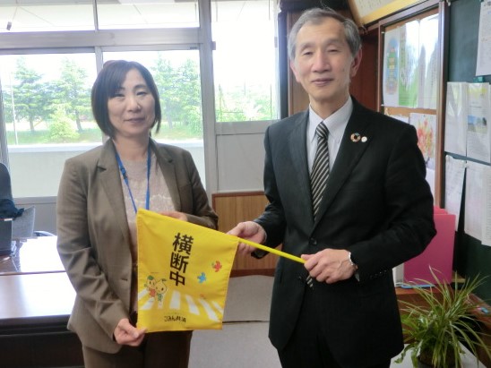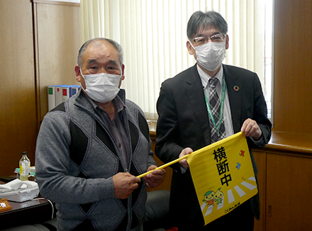 外ヶ浜町へ横断旗30本を寄贈しました。