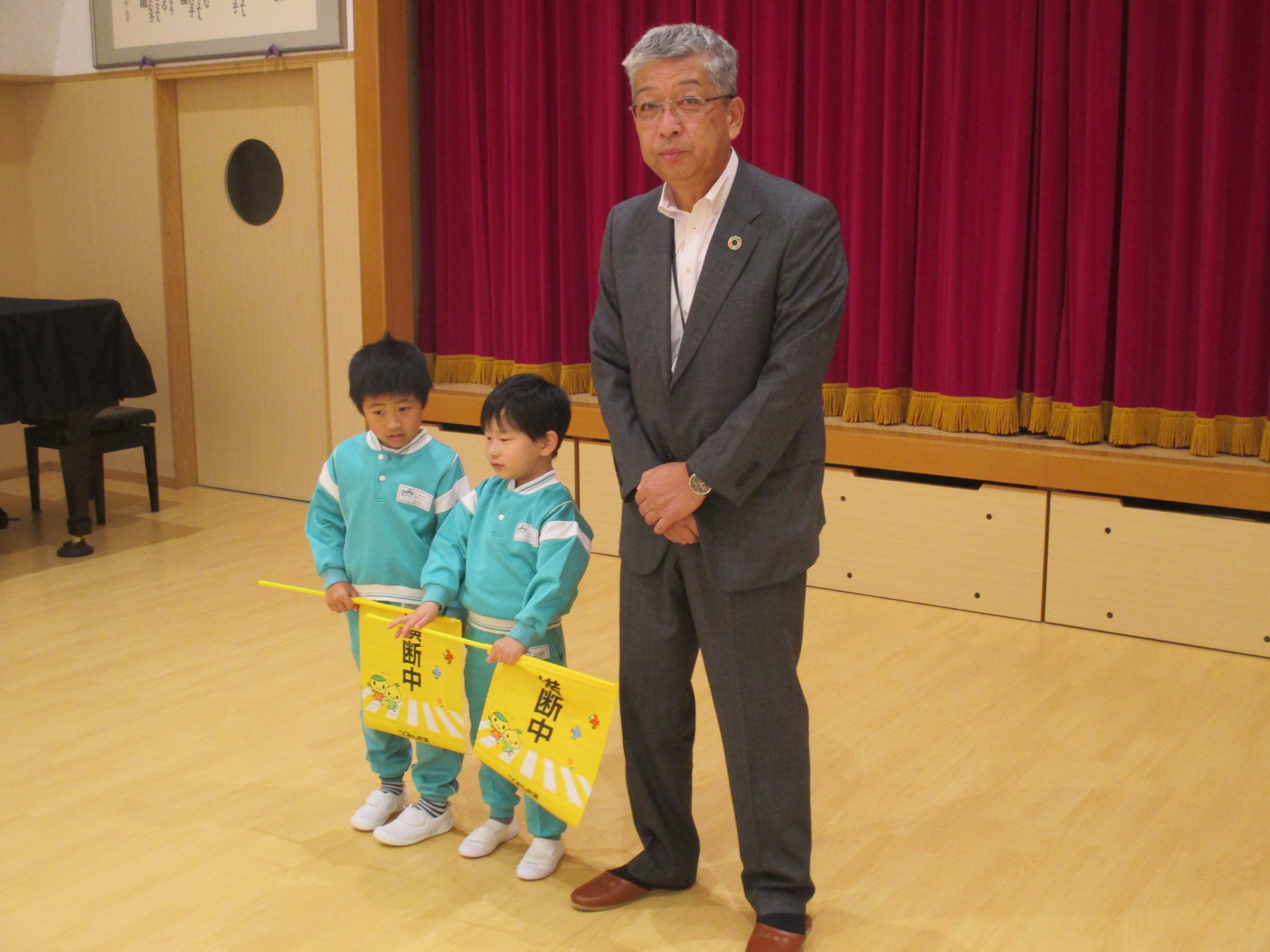 船沢こども園へ横断旗80本を寄贈しました。寄贈した横断旗は、近隣の小学校にも配布され交通安全に活用いただきます。