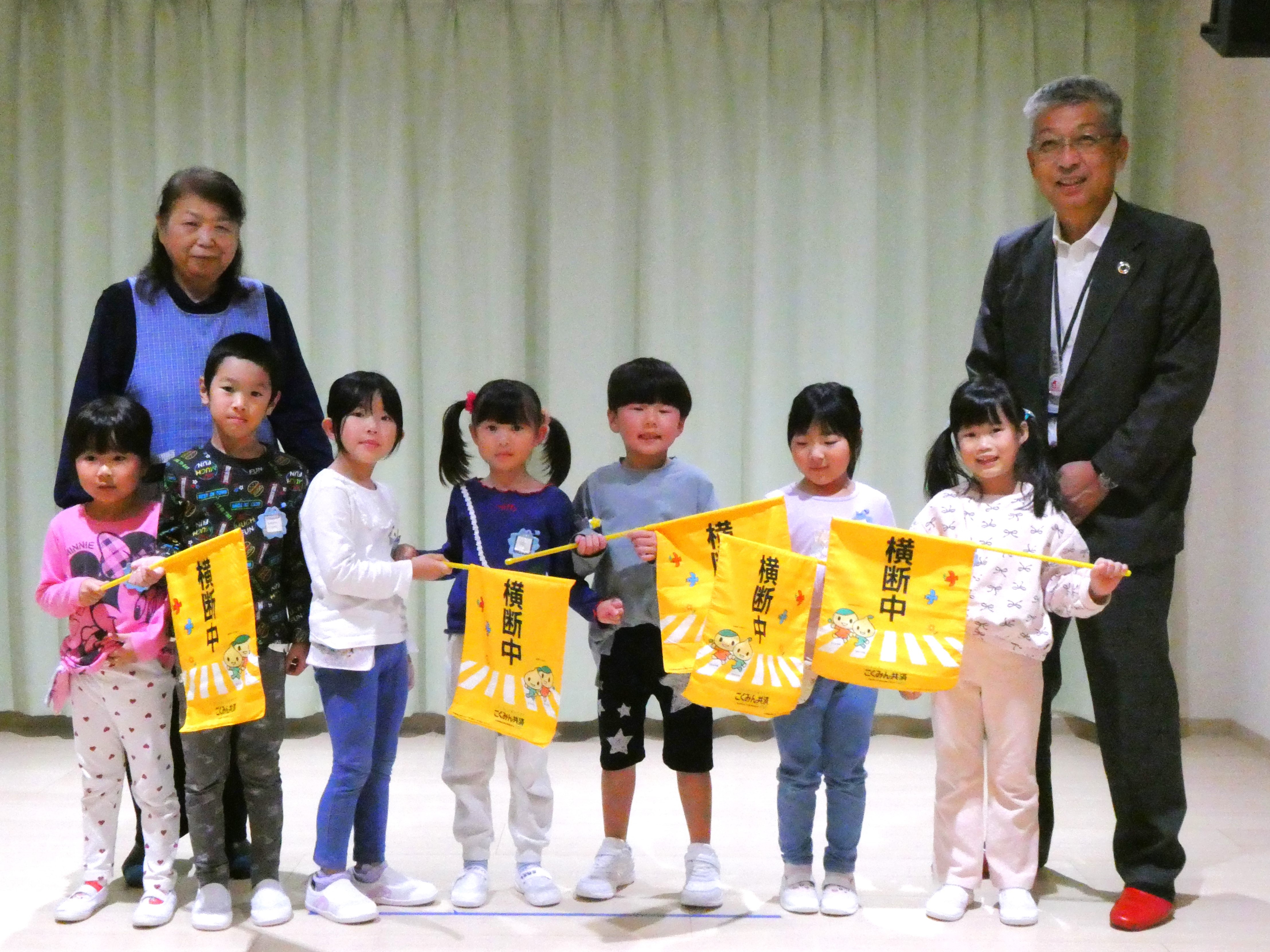 寄贈した横断旗は、子どもたちへの交通安全の取り組みや近隣の横断歩道で活用いただきます。