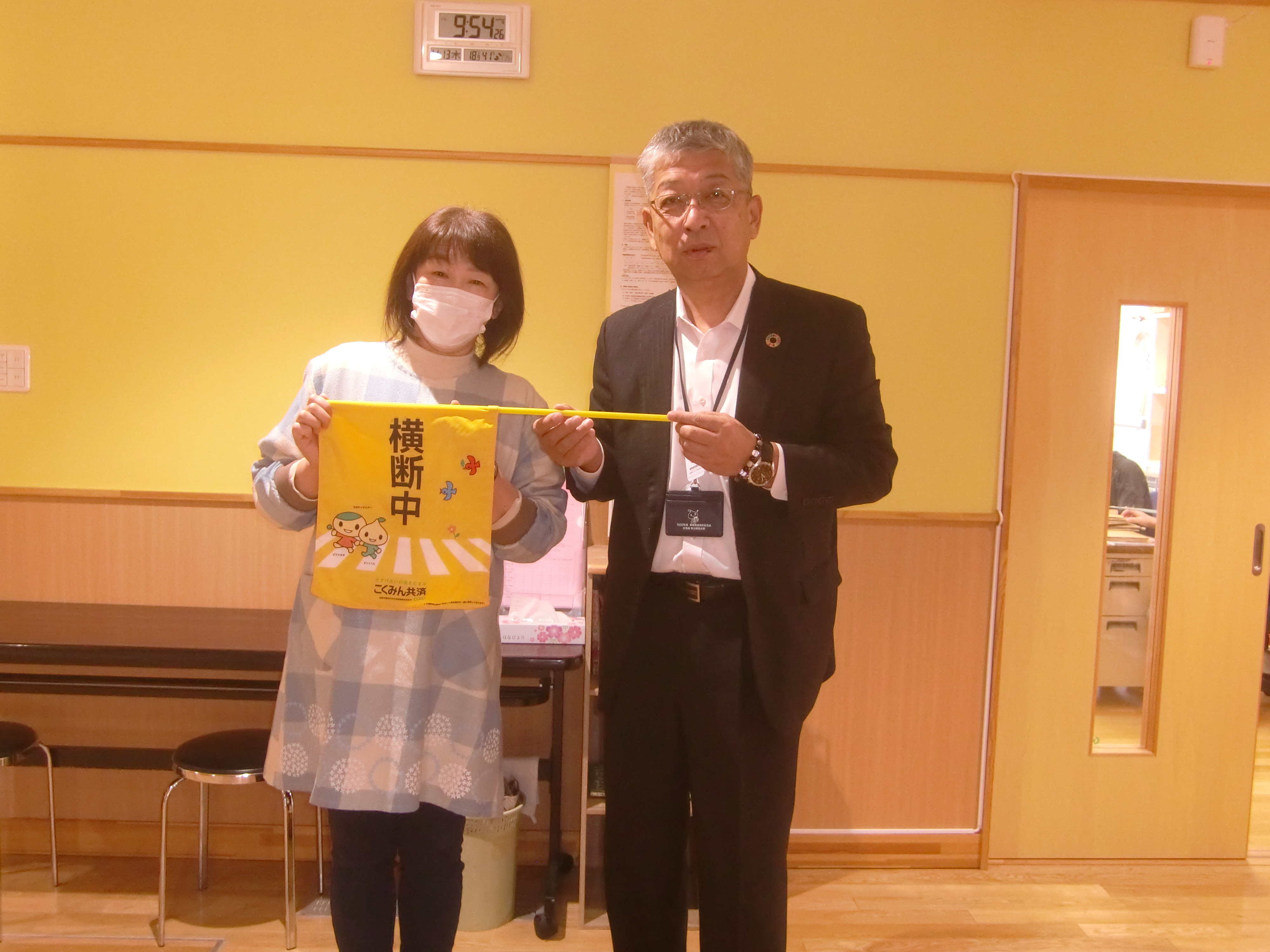 寄贈先からは、「子どもたちへの指導に役立てたい」とうれしいお言葉をいただきました。寄贈した横断旗を活用して、交通安全の啓発に役立てていただきたいです。また、「7才の交通安全プロジェクト」を通して、生活協同組合としての取り組みに価値を感じていただければ幸いです。