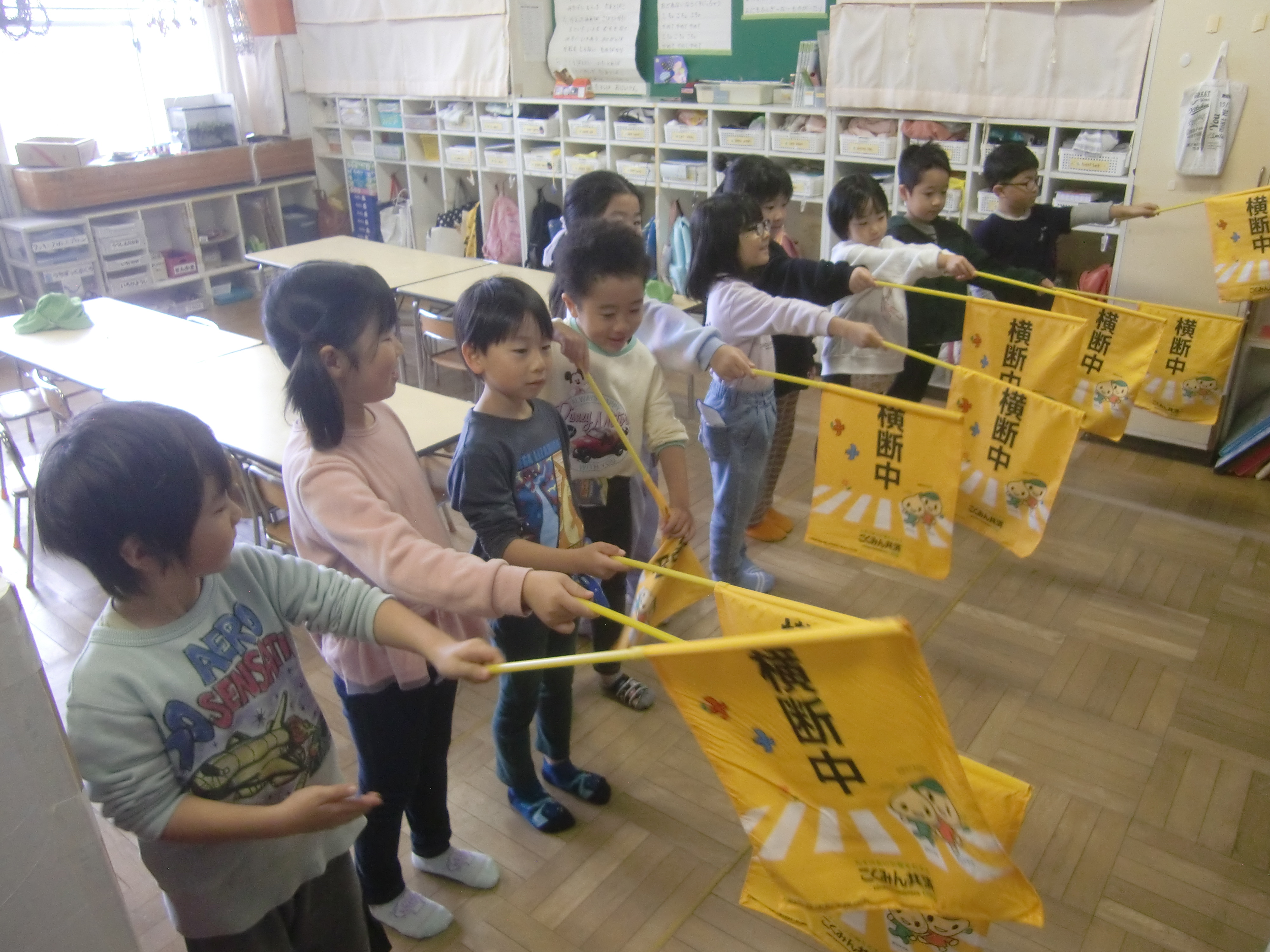 寄贈した横断旗は、園外への散歩の際、実践を踏まえた交通ルールの学習に活用いただきます。