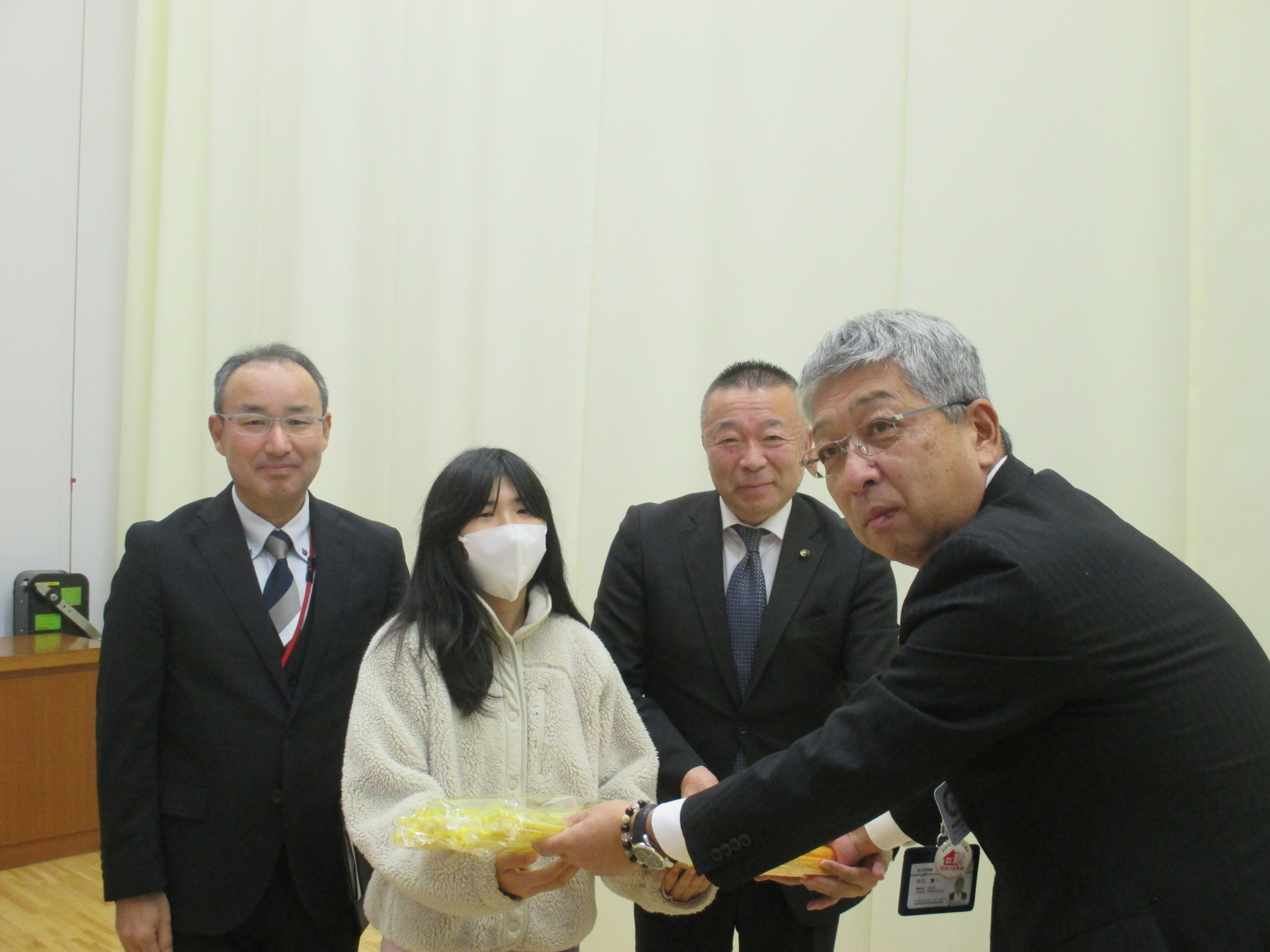 校長先生より「小学校付近は狭い道路となっており、危険を感じている。横断旗の寄贈はありがたく、有効に活用していきたい。」と感謝のお言葉をいただきました。マイカー共済の推進が社会貢献につながっており、「7才の交通安全プロジェクト」に対する取り組みのやりがいをあらためて感じました。