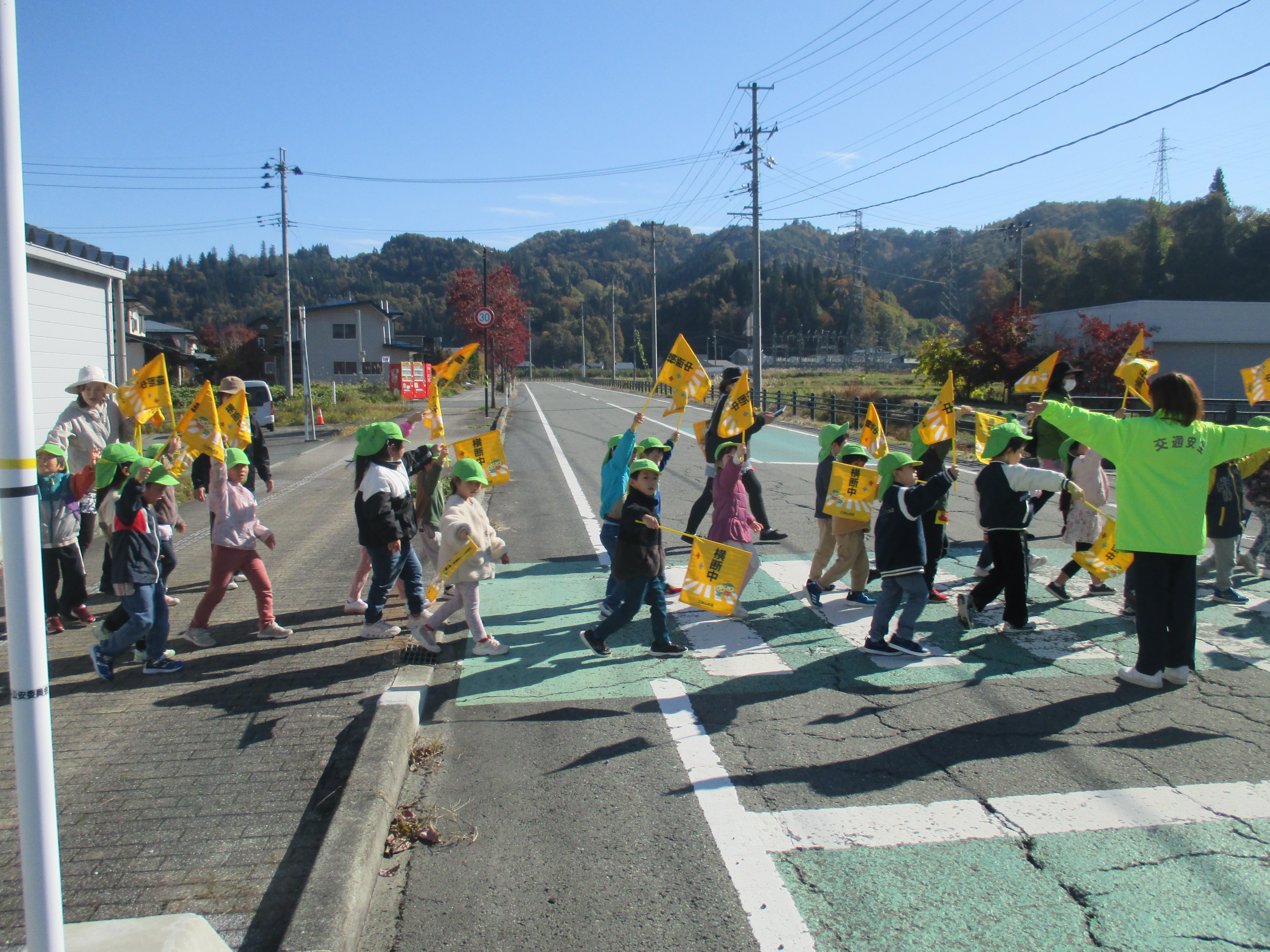横断旗寄贈式当日は、山形県警察本部等の協力のもと、交通安全教室もあわせて実施しました。コロナ禍で園内でのイベントが限られていることもあり、喜んでいただくことができました。今後も本取り組みを継続していきます。