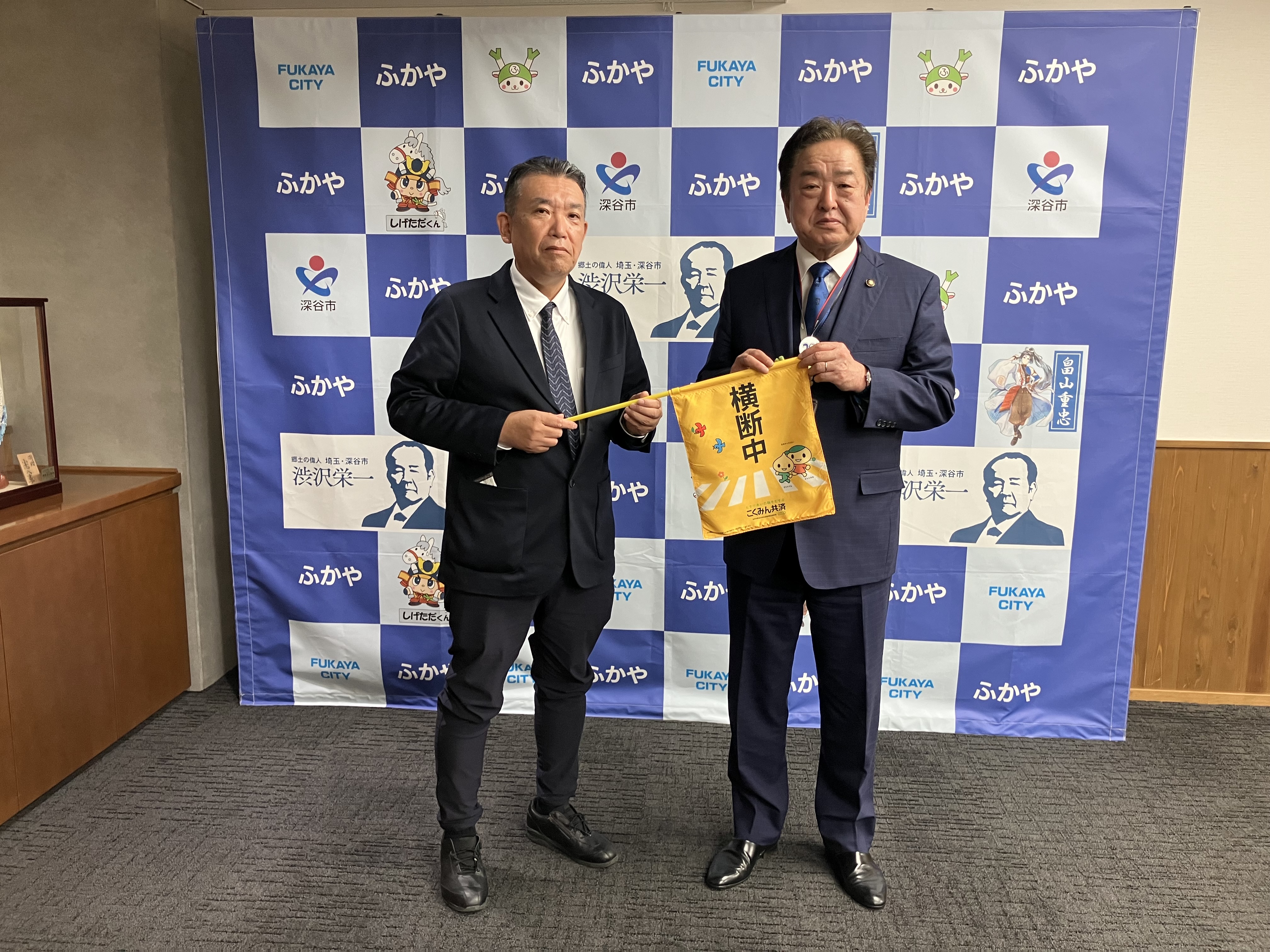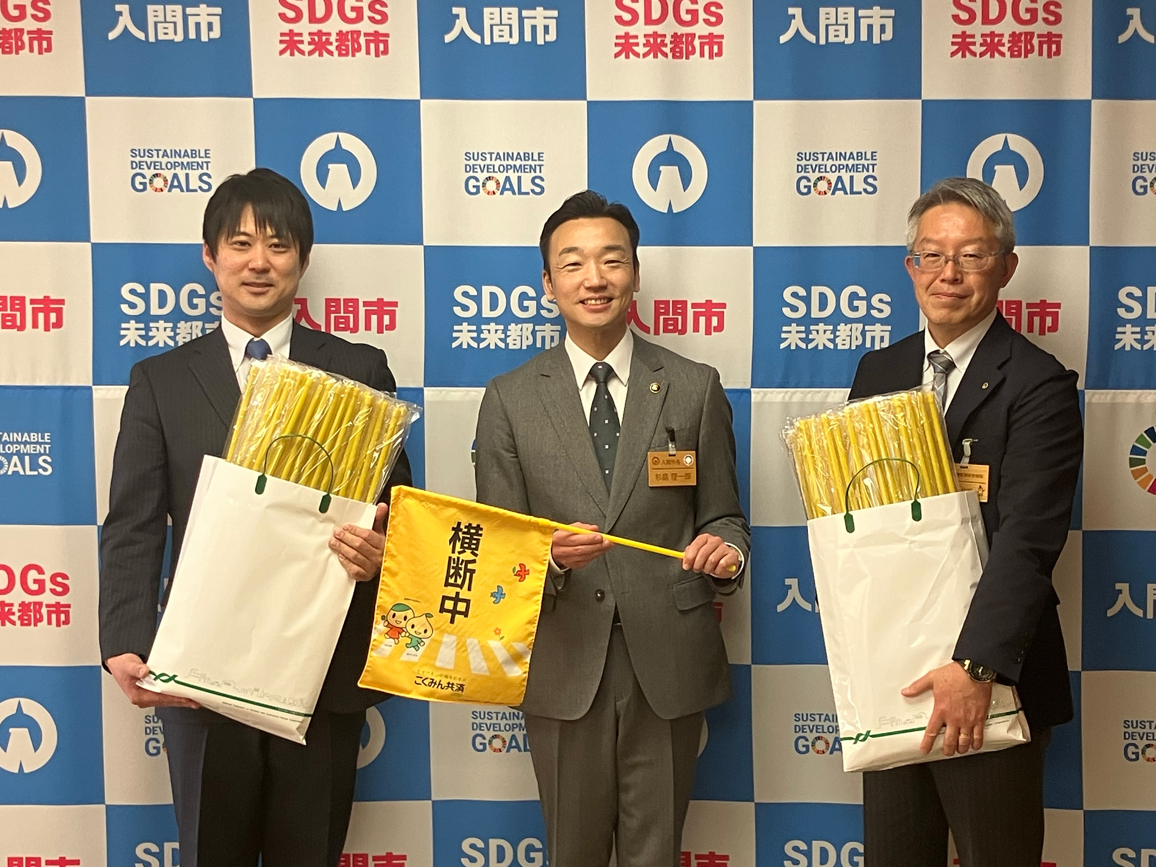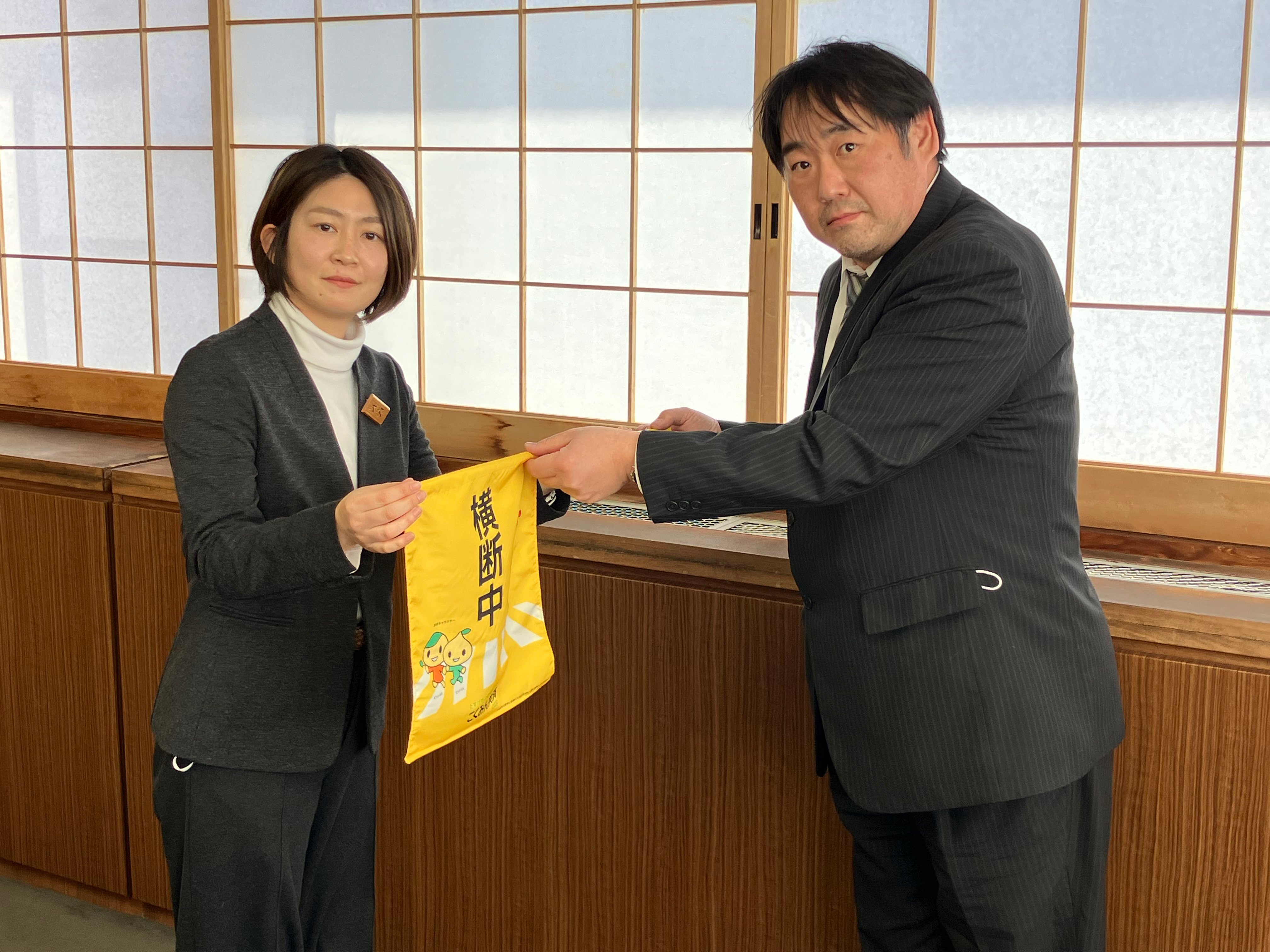 「自治体の予算の兼ね合いもあって、ここ数年横断旗を新調できていなかったことから今回寄贈いただき本当にありがたいです。市内の各小学校にてしっかり活用させていただきます。」と感謝のお言葉をいただきました。