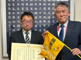 中央区職員労働組合へ横断旗50本を寄贈しました。寄贈した横断旗は、中央区職員労働組合を通じて「中央区 地域の安全と安心を守る会(特定非営利活動法人)」の各エリアに配布され、活用いただきます。