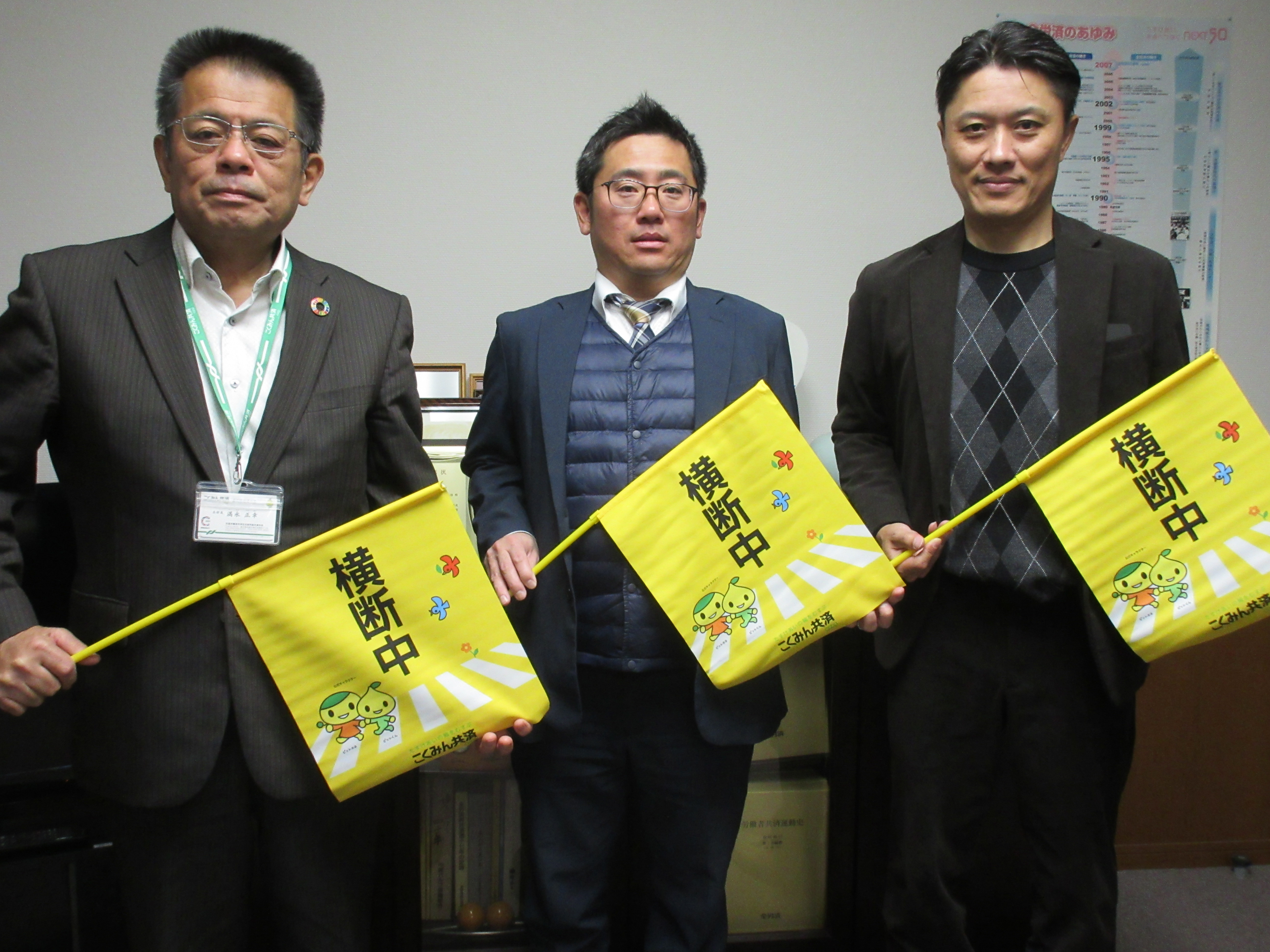 各地区の交通安全協会でも寄贈を心待ちにいただいている様子で、実際に使用されているこくみん共済 coop の横断旗を見ると地域の皆さまのお役に立てていることが実感でき、うれしく思いました。引き続き、本取り組みを行っていきたいと思います。