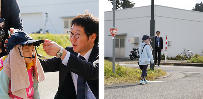 アイマークレコーダーを用いて、子どもたちの交差点での目線を調査。