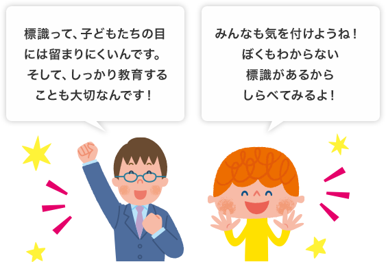 実験では、子どもたちの目線には道路の標識が見えづらいこと、子どもたちがそもそも標識の意味を理解していないことがわかりました。