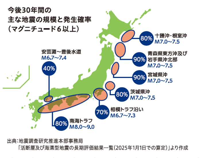 今後30年間の主な地震の規模と発生確率は?