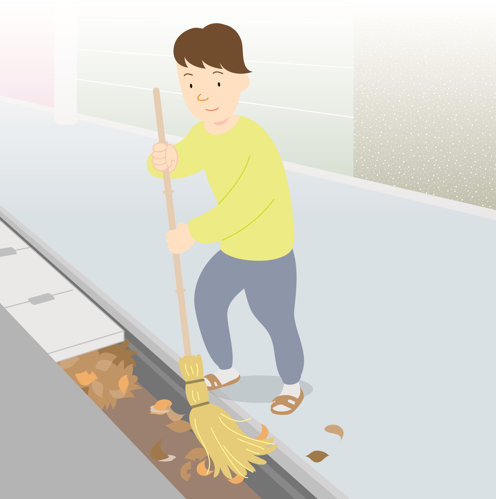 ゴミや泥で水が詰まってしまうと、道路に水があふれて危険です。普段から近所の人といっしょに掃除しておくと安心です。家財道具を高いところへ移動させるのは、台風が迫り、浸水の危険がある場合にしましょう。