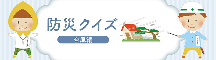 夏から秋にかけて多くの台風が上陸する日本では、毎年大きな被害が報告されています。特に近年の台風は、異常気象の影響を受けて急に大型化することもあるので注意が必要です。防災クイズ「台風編」では、台風が発生しやすい時期を前に、覚えておきたい注意事項をご紹介します。災害時の家のまわりの状況を想像しながら取り組んでみてください。