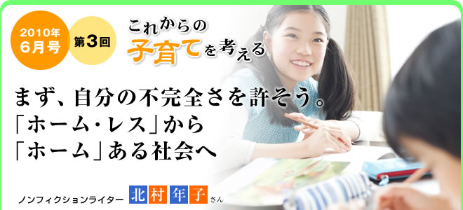 子どもたちの幸せな明日をつくりだすことをめざす「これからの子育てを考える!」シリーズ。その第3回として、ノンフィクションライターの北村年子(きたむら としこ)さんのインタビューをお送りします。北村さんは子ども・女性・ジェンダーを主なテーマに取材、執筆活動に取り組みながら、親と子の自尊感情を育てるための自己尊重ワークショップをはじめ、子育て支援・子育ち支援のためのセミナー、学校での「いじめ」「ホームレス問題」についての授業・講演活動も精力的に行っています。