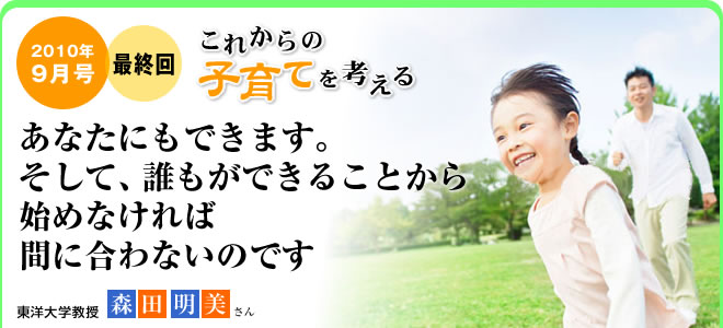 子どもたちの幸せな明日を作り出すことをめざす「これからの子育てを考える!」シリーズ。その最終回として東洋大学教授 森田 明美さんのインタビューをお届けします。森田さんは子どもの権利を基盤とした児童福祉学が専門で、NPOこども福祉研究所理事長、こくみん共済 coop の理事でもあります。国や自治体への政策提言(※)だけでなく、地域での子育て支援活動にも関わっています。