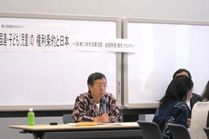 ※「子どもの権利条約」の国内での実現のために、国会内で市民と議員を対象としたセミナーを開催。コーディネーターをしています。2010年7月29日の第3回院内セミナーの様子は こちら 。