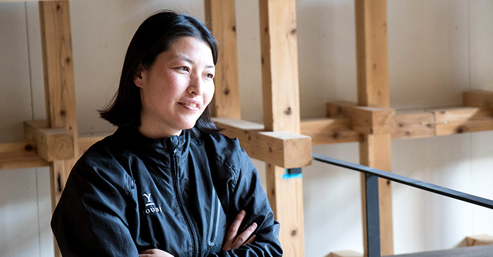 1982年大阪府生まれ。10代で日本の森林問題に出会い、木でものづくりをしながら未来を切り開くことをライフワークに定める。大学で建築を学んだ後、飛騨高山で住宅店舗等の設計に従事。そのときに出会った、後の「ようび」代表で家具職人の大島正幸氏※と2011年に結婚、正幸氏が先に移り住み、ヒノキ製の家具づくりに取り組んでいた岡山県の西粟倉村に。2016年冬、ストーブが原因と見られる火事で、ようびの工房が機材ごと全焼する大きな試練に直面。スタッフ一丸で再興にあたり、2018年春に、自らが設計を手がけたショールーム、本社兼新工房が完成。
