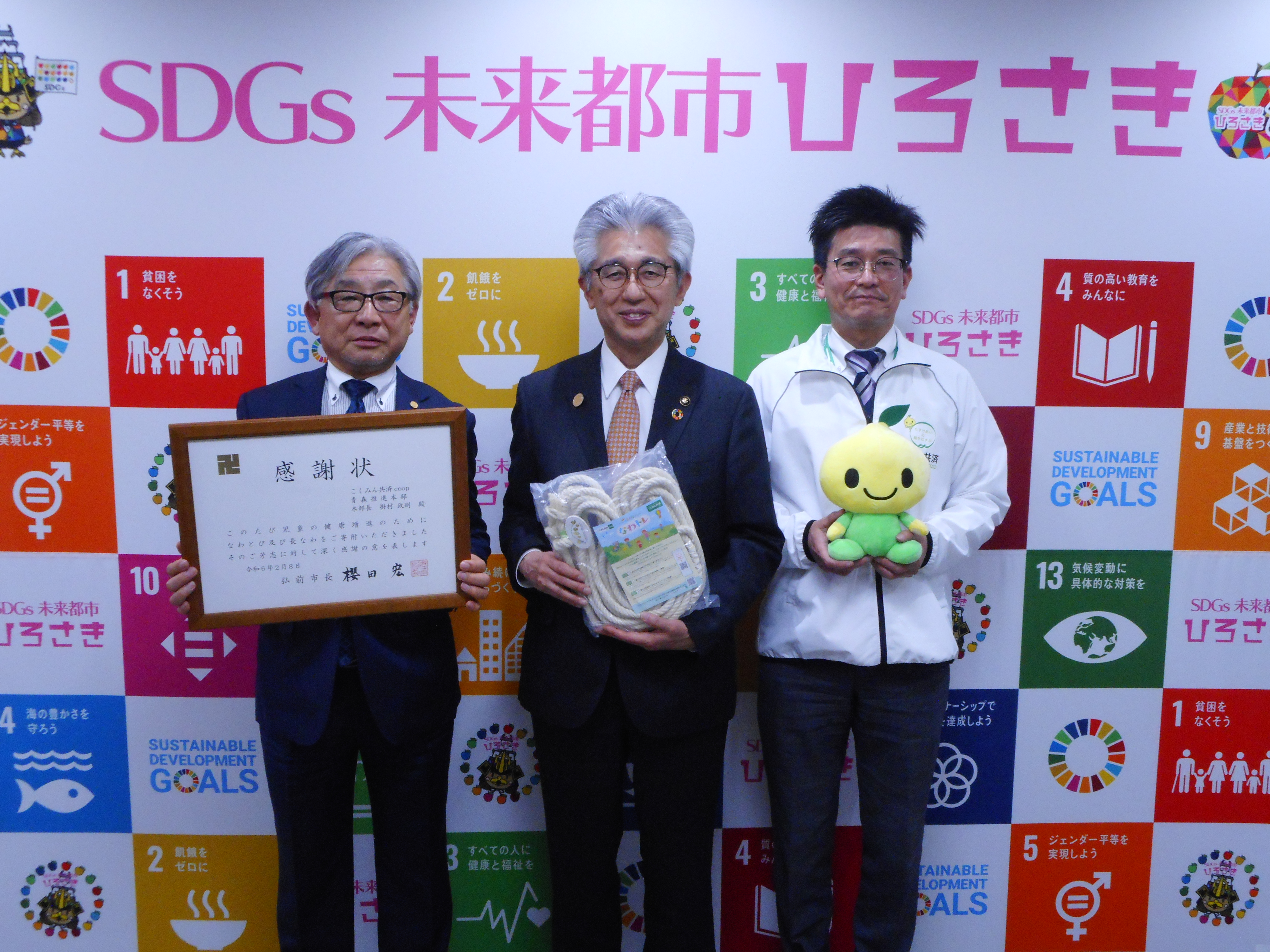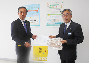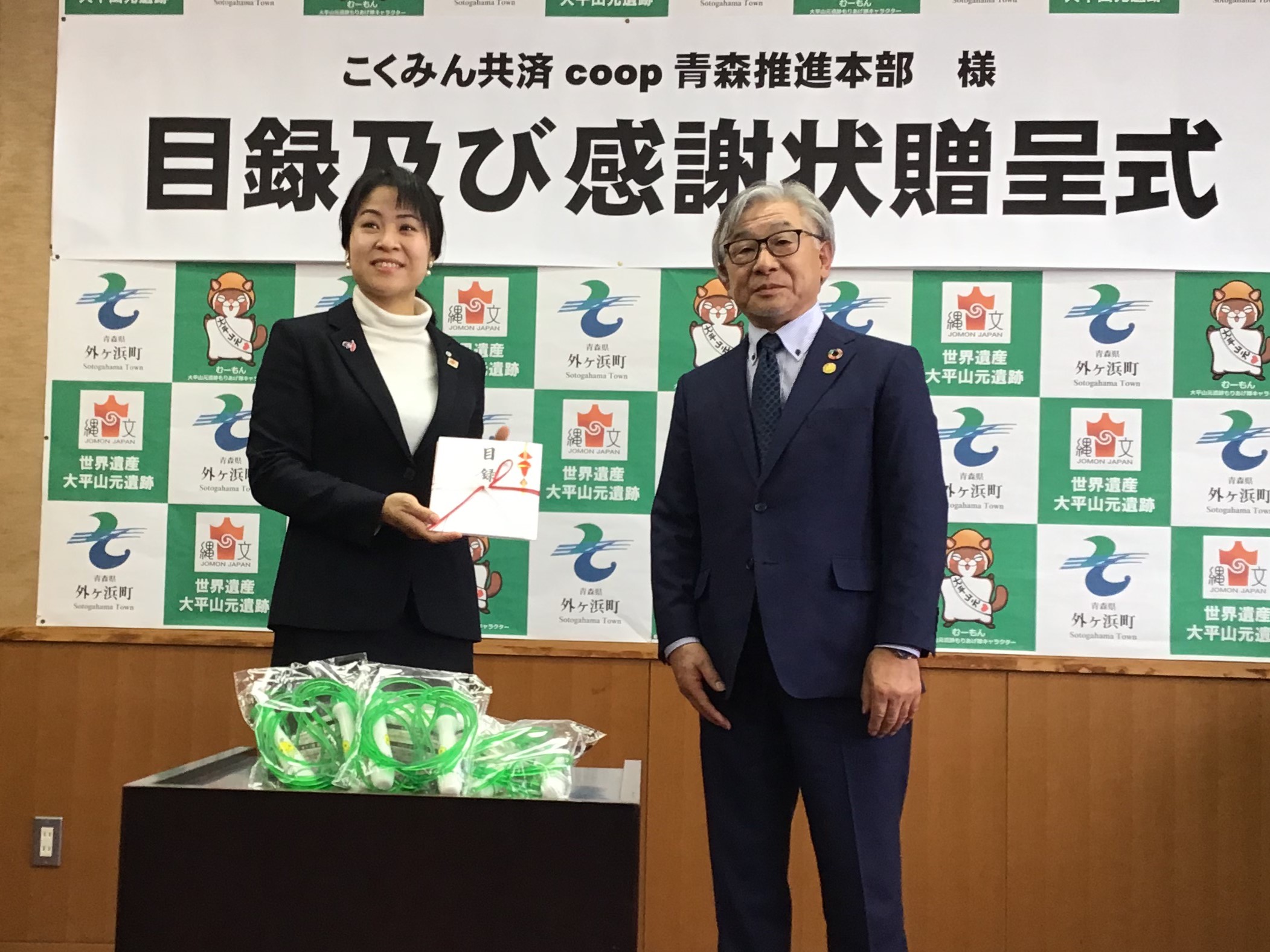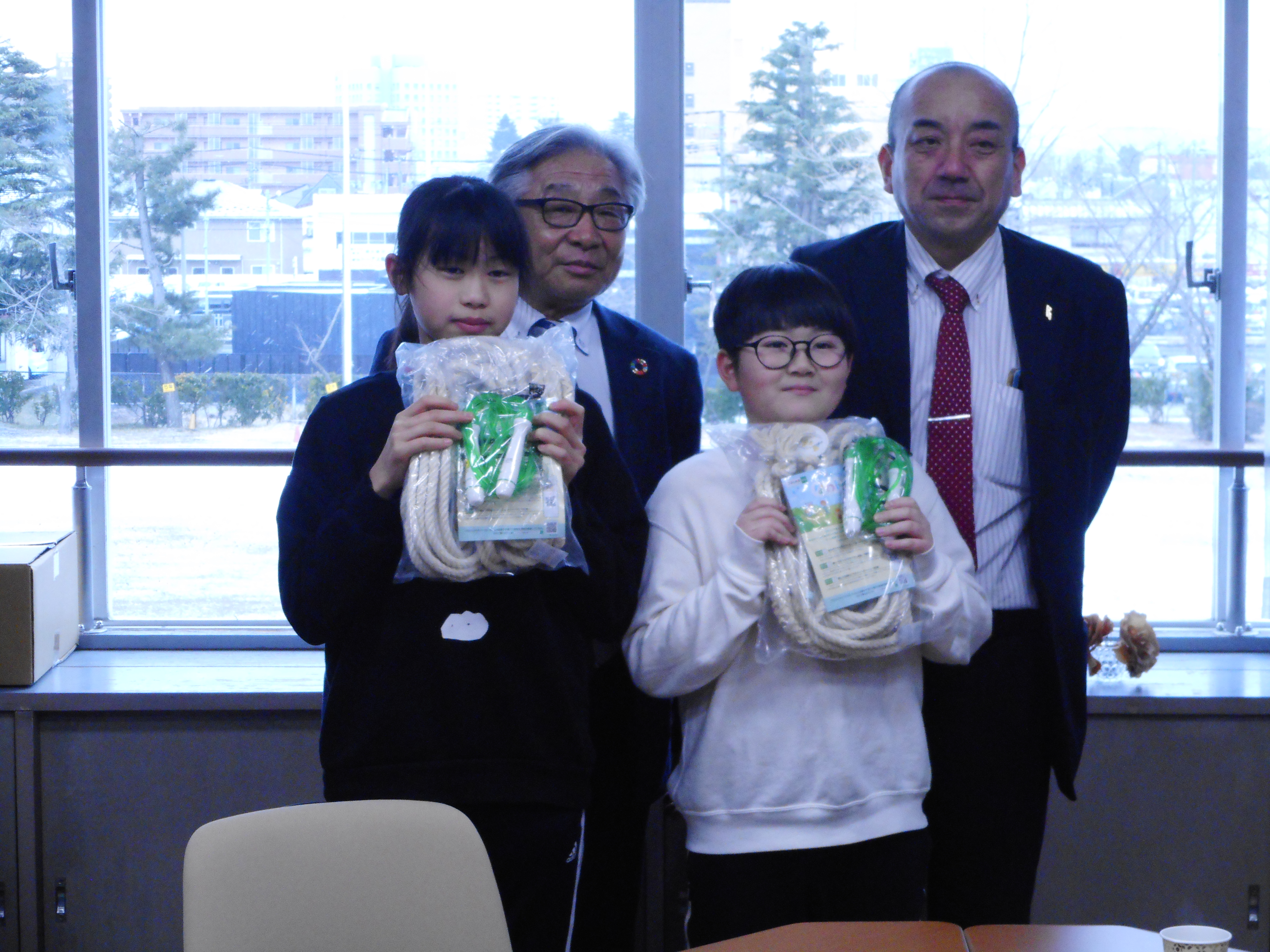 八戸市へなわとび295本、長なわ30本を寄贈しました。寄贈したなわとび・長なわは、市内の小学校・中学校へ配布され体育での授業で活用いただきます。