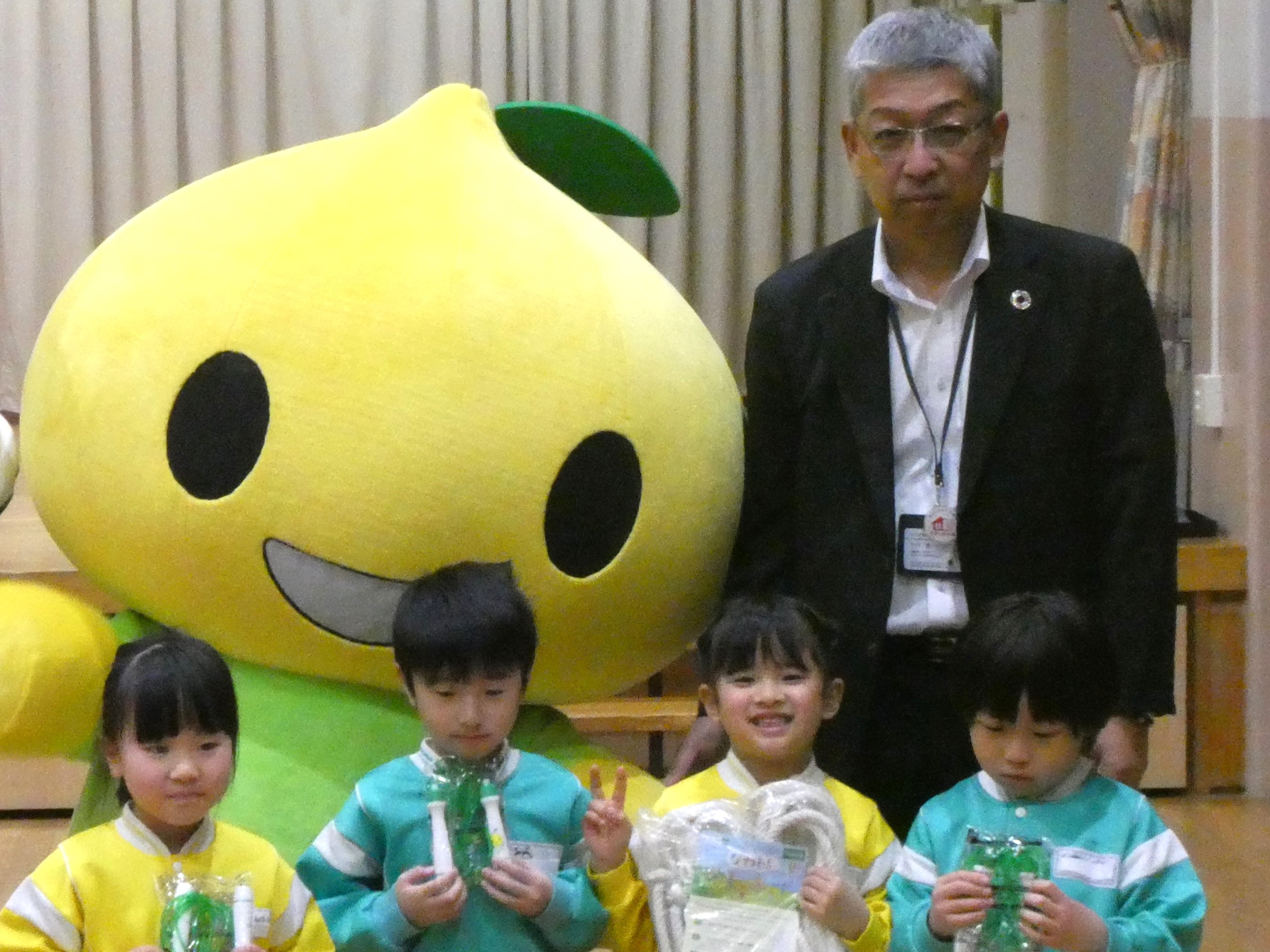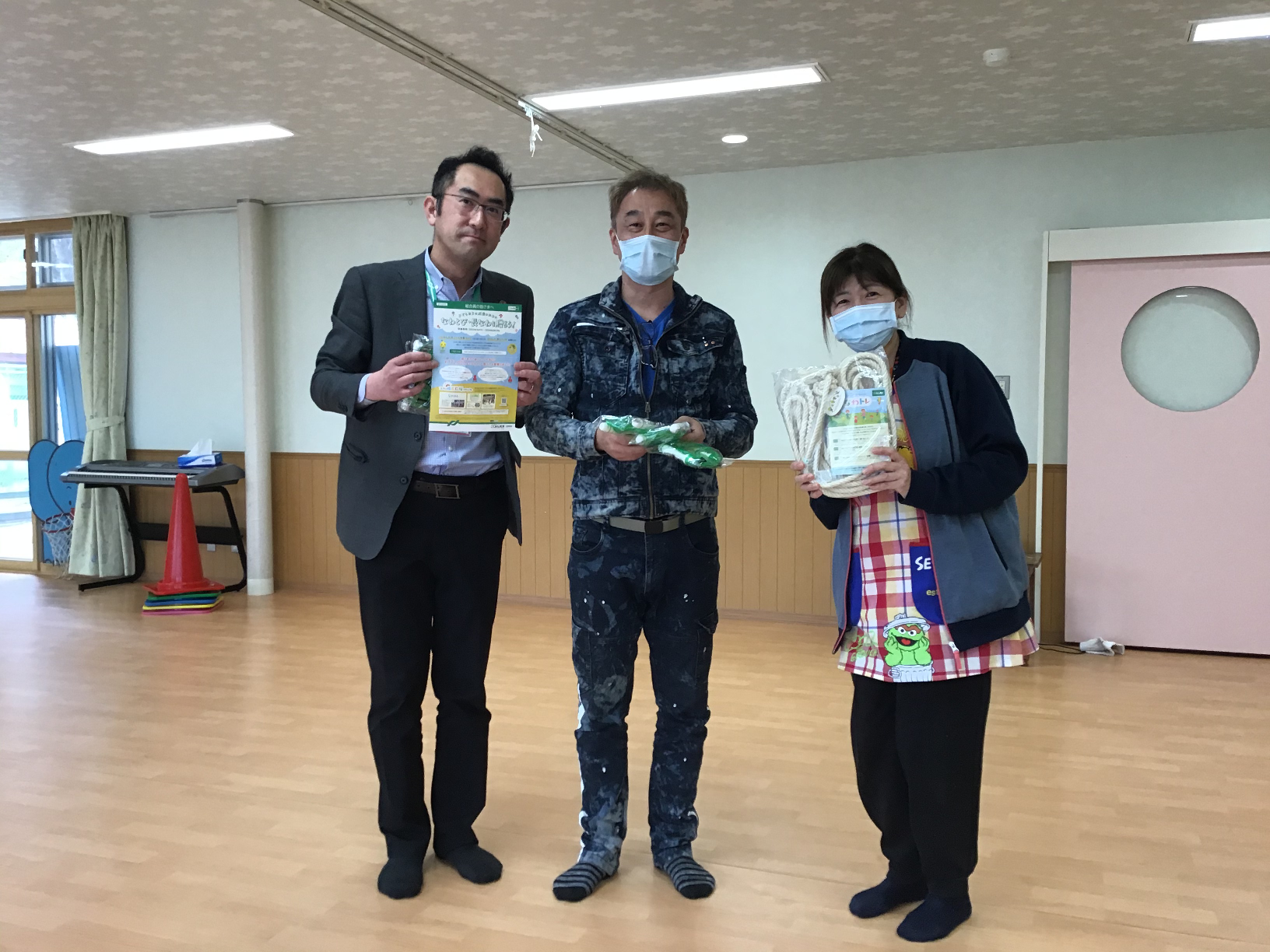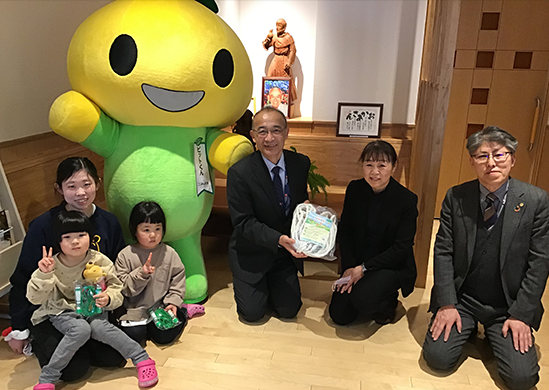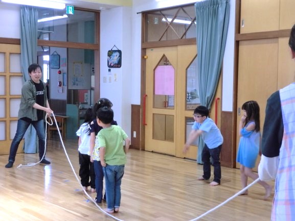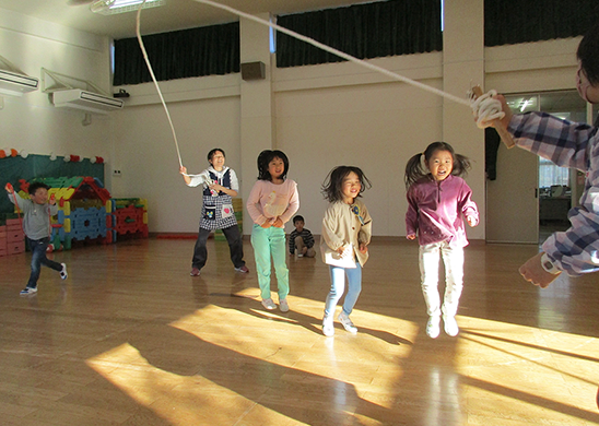 寄贈式を行ったやまばと保育園の大友園長より、「保育園でもなわとび遊びが流行っていて、大変助かります。」と感謝の言葉をいただきました。寄贈式終了後、早速園児たちになわとび、長なわで遊んでもらいました。なわとびを使って子どもたちがのびのびと体を動かすことで、心も体もすこやかに成長し、たすけあいの気持ちを未来につないでいけるようになってくれればいいと願っています。