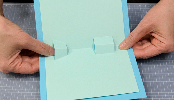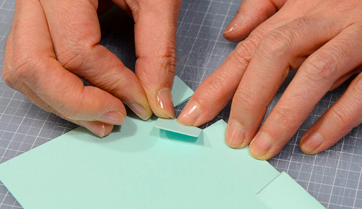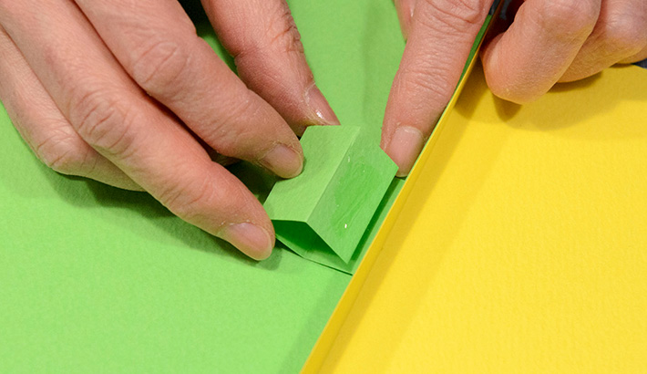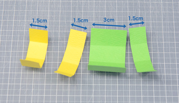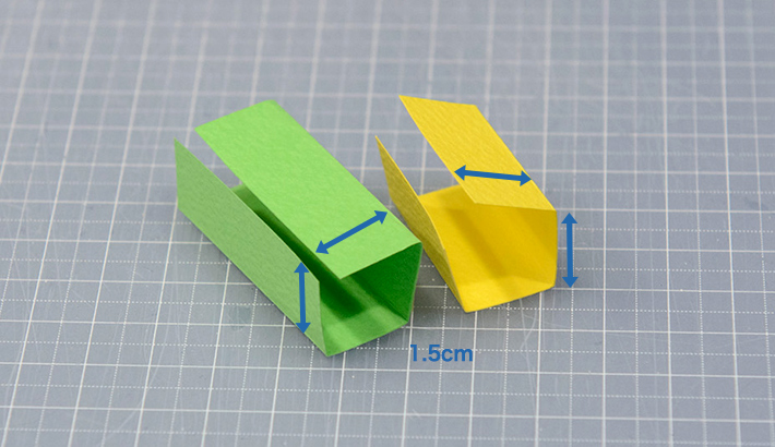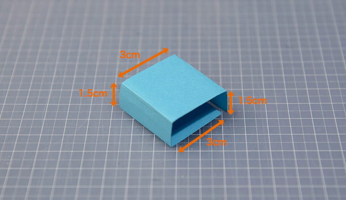 台紙と同じ色紙を使って正方形の箱型立体パーツを作ります。高さはすべて1.5cmになるようにします。