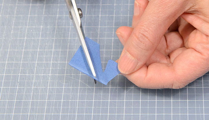 細かい直線的なパーツは、カッターナイフと定規を使うときれいに切り出せます。道具を適宜使い分けましょう。