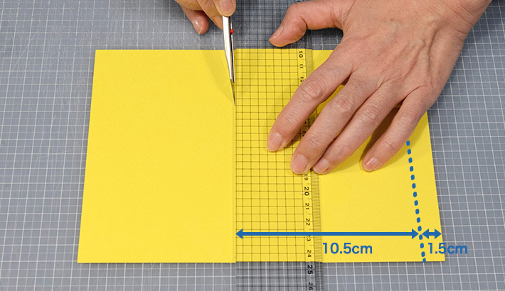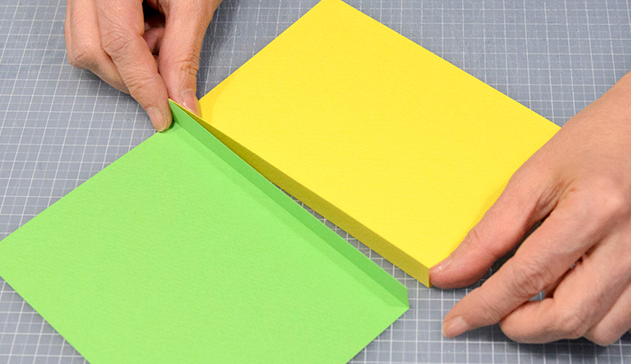 2枚の紙をつないで、開いたときにA5サイズになる台紙を作ります。
