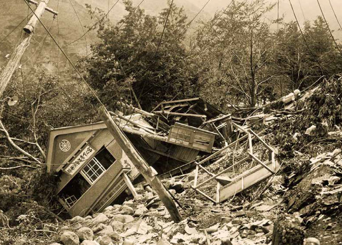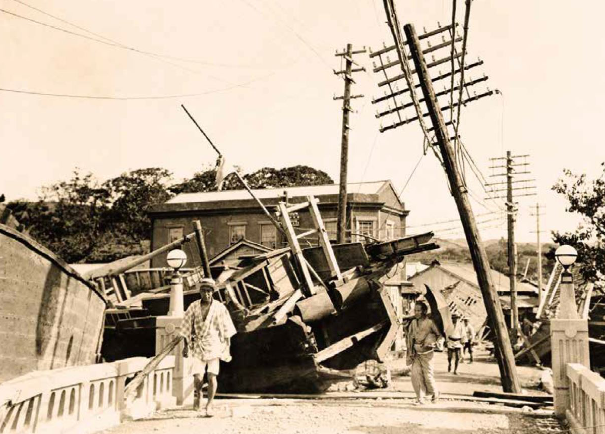 1923年9月1日午前11時58分に発生した、相模湾北西部を震源とする相模トラフを震源とする海溝型地震です。埼玉県、千葉県、東京都、神奈川県、山梨県で震度6を観測、北海道道南から中国・四国地方にかけての広い範囲で震度5から震度1を観測し、10万棟を超える家屋を倒潰しました。 この地震によって全半潰・消失・流出・埋没の被害を受けた住家は総計37万棟にのぼり、死者・行方不明者は約10万5000人に及ぶなど、甚大な被害をもたらしました。