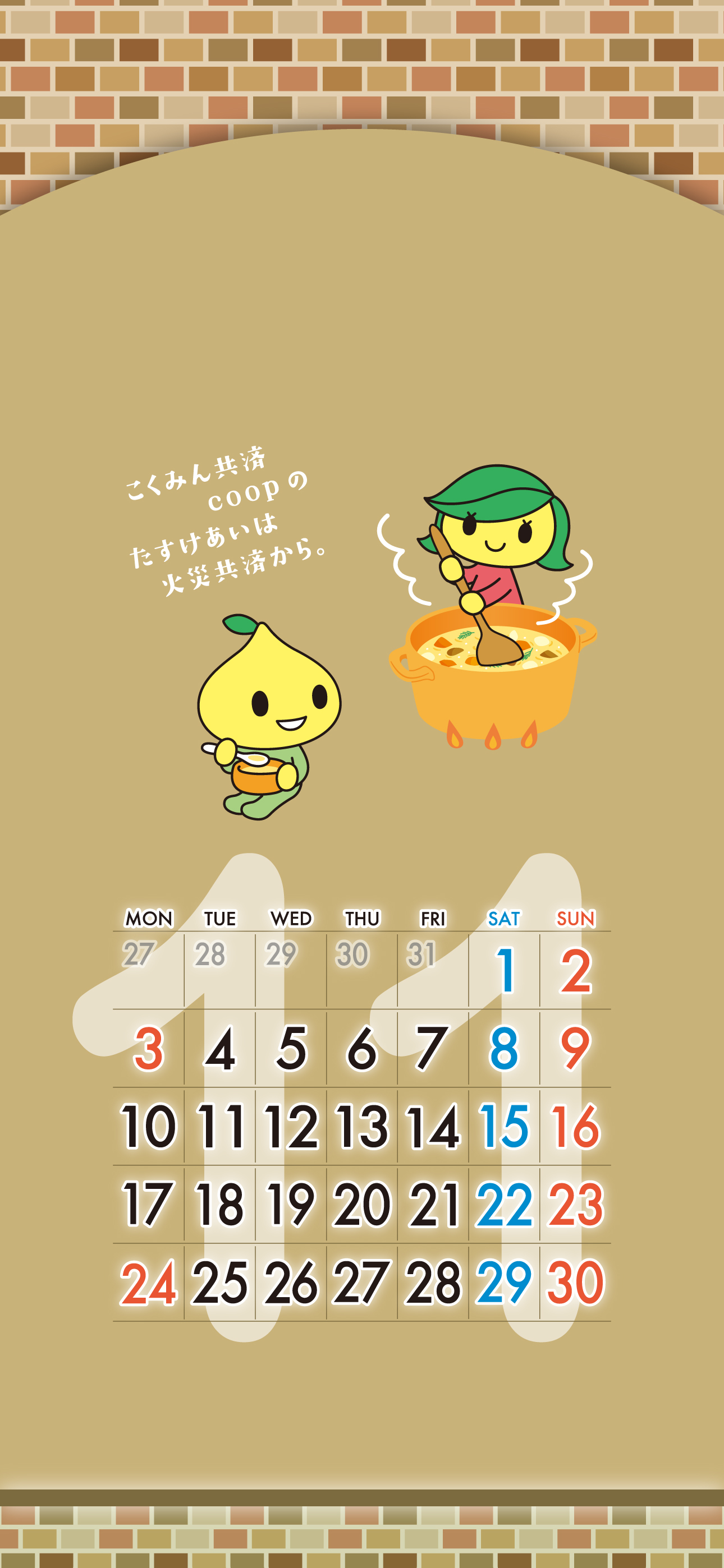 - 下のカレンダー画像を数秒ほど長押しして、画像を保存してください。