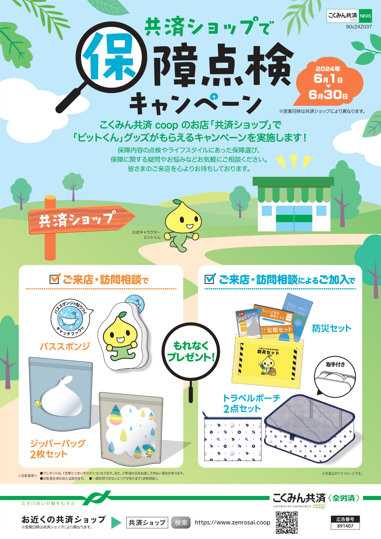 こくみん共済 coop のお店「共済ショップ」では「ピットくん」グッズがもらえる保障点検キャンペーン実施します。