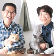 うらやましいほど仲むつまじい岩崎夫妻。「仲良しの秘訣は?」と尋ねたところ、「やはり共通の趣味があることですかね」と英信さん。夫婦ゲンカもしないそう。「お互いの意見の食い違いは当然あること。そこで、“そういう意見もあるよな”、とお互い受け入れられるかどうかが大切」。取材後、家族の一員である愛猫、リズちゃんとマロンちゃんも加わり、リラックスした笑顔を見せてくださったお二人。まさにおしどり夫婦でした。