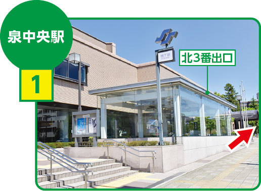 仙台地下鉄南北線「泉中央」駅北3番出口を出てそのまま直進します。