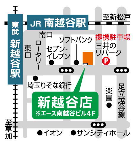 東武スカイツリーライン 新越谷駅東口・JR武蔵野線 南越谷駅南口より徒歩4分。