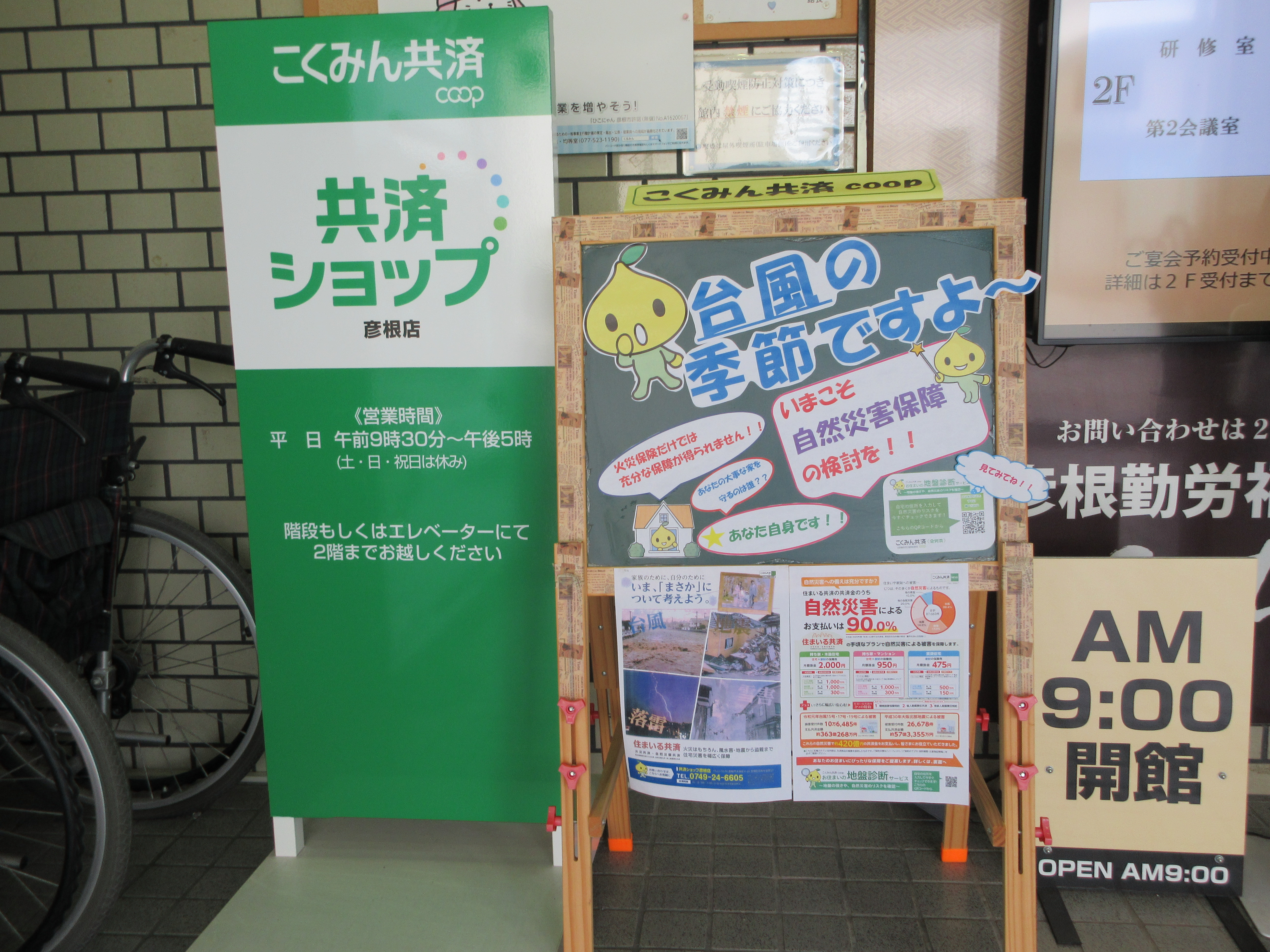 共済ショップ彦根店では、共済に関するお問い合わせやお申し込み受付をはじめ、保障の見直しのご相談も承っております。どうぞいつでもお気軽に窓口にお立ち寄りください。