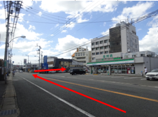 ⑩直進すると右手にファミリーマートが見えます。ファミリーマートを越え、すぐ右折します。
