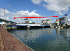 ④進むと交差点があり、交差点を直進します。左側には徳島県庁があります。