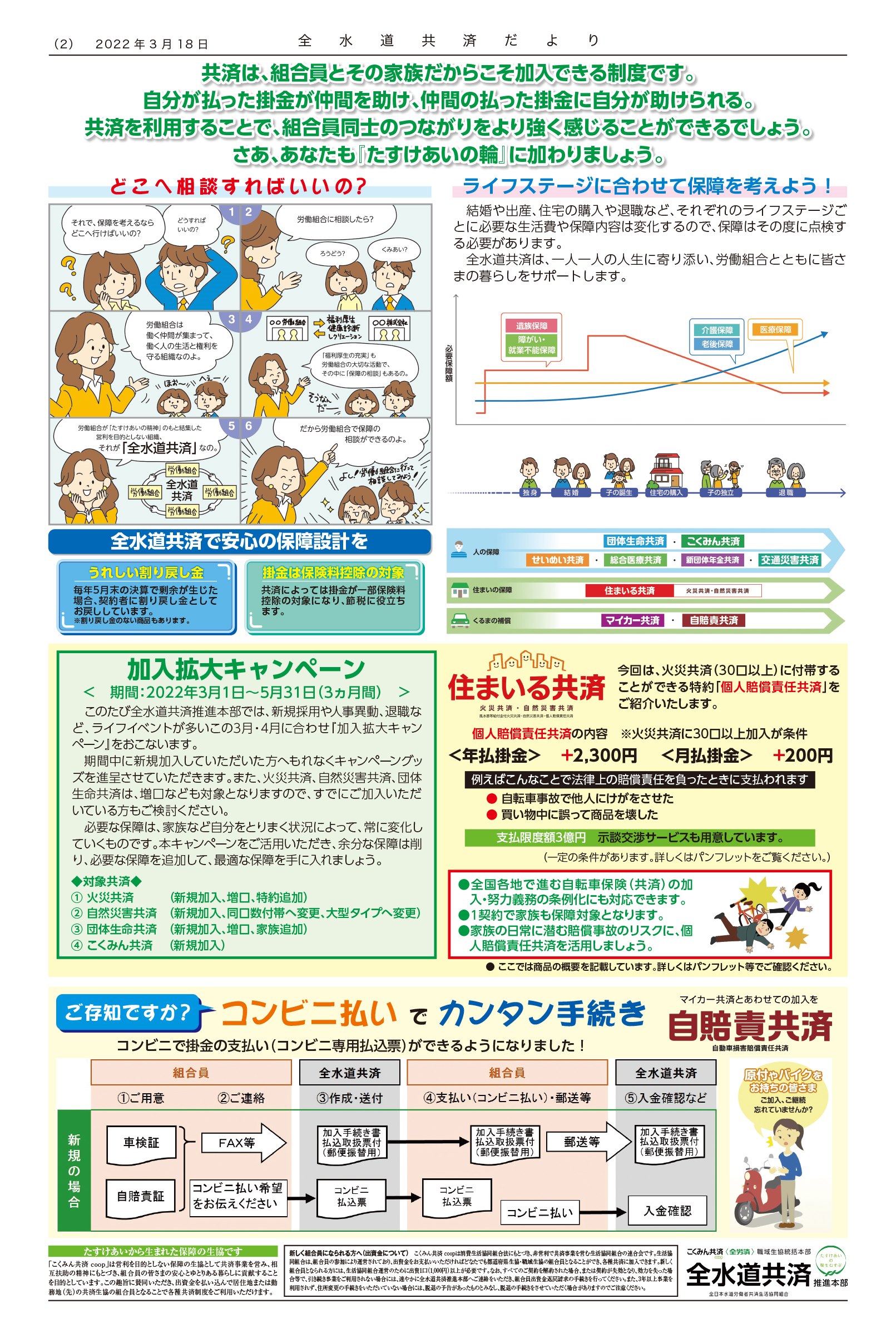 「全水道共済だより(2022年3月18日発行)」を掲載いたします。