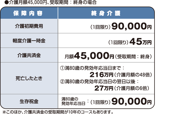 お支払い例(介護月額:45,000円、受取期間:終身の場合)