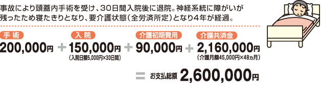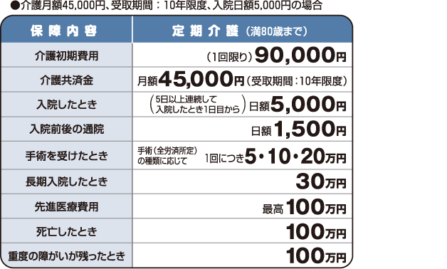 お支払い例(介護月額:45,000円、受取期間:10年限度、入院日額5,000円の場合)