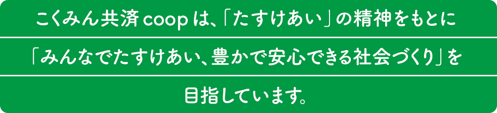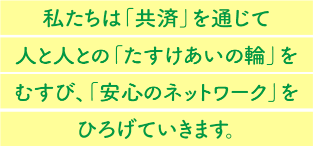 「団体生命共済」は団体でまとまって加入し、死亡・障がい・入院等の万一の場合に、相互に助け合う、組合員同士のたすけあいをかたちにした共済制度です。