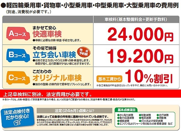 - ※車の状態により「立ち会い車検」から「快適車検」に変更になる場合があります。