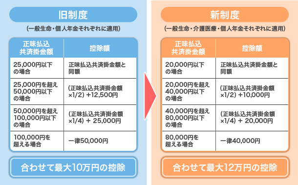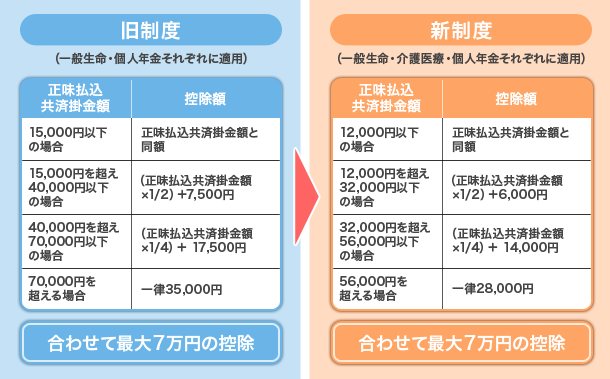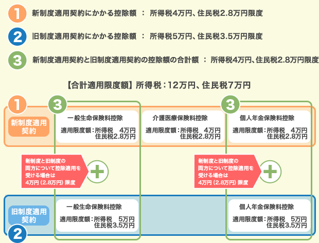 適用される制度が旧制度か新制度かによって、所得税・住民税の控除額が異なります。