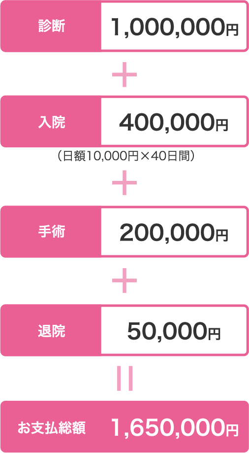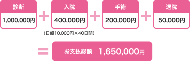 乳がんと診断され、根治手術を受け40日間入院し、その後無事に退院した場合。