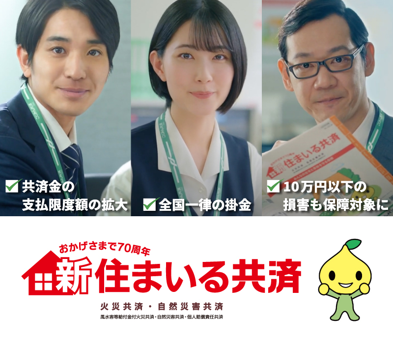 住まいる共済は、火災共済と自然災害共済を合わせた名称です。