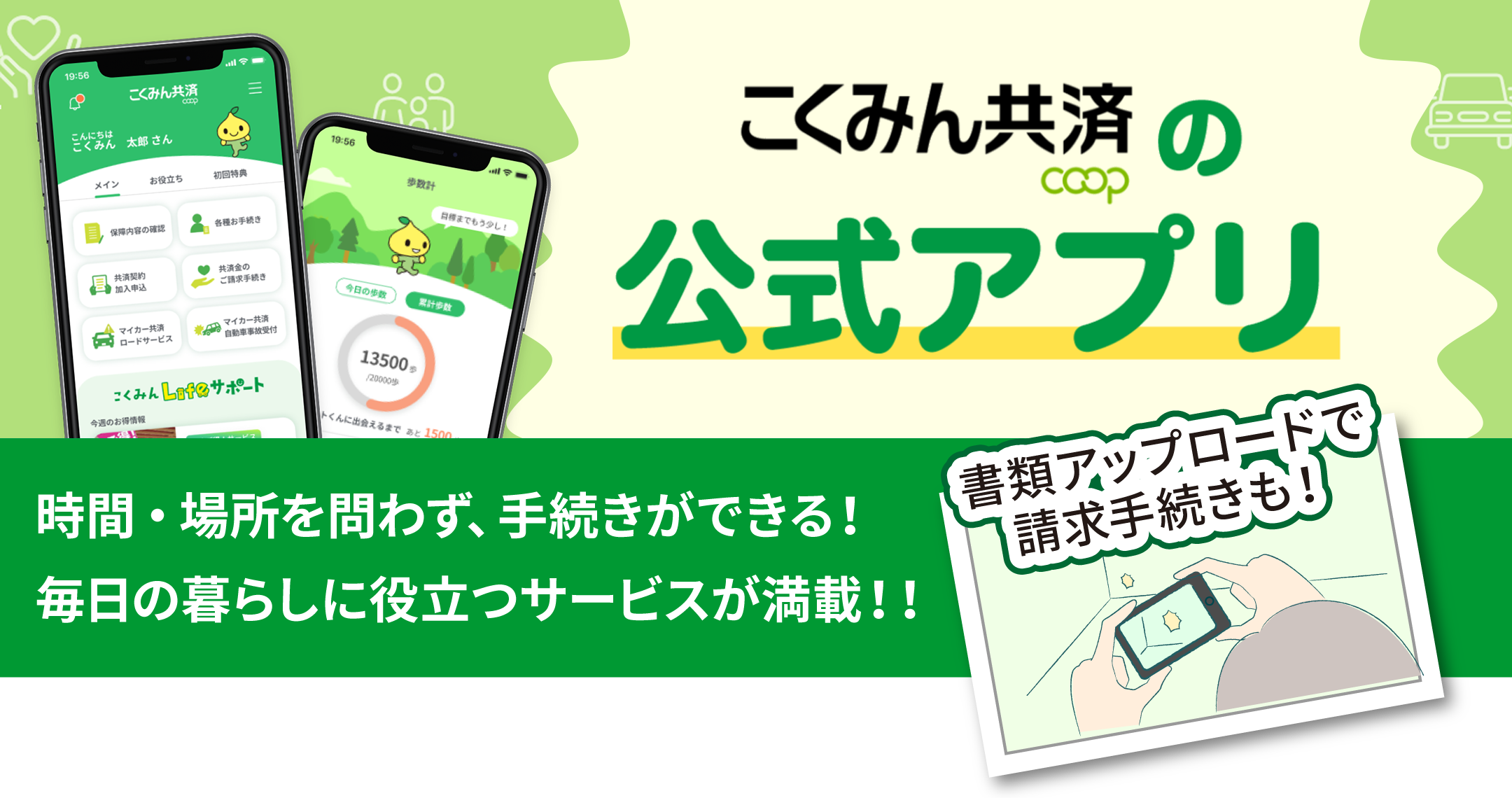 また、ご加入後は公式アプリからいつでも契約のご確認、変更・更新手続き、共済金のご請求手続きなどができて便利です。