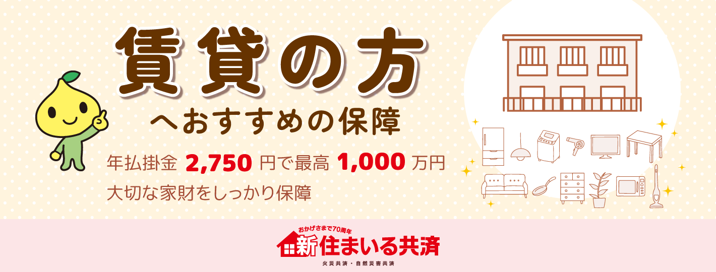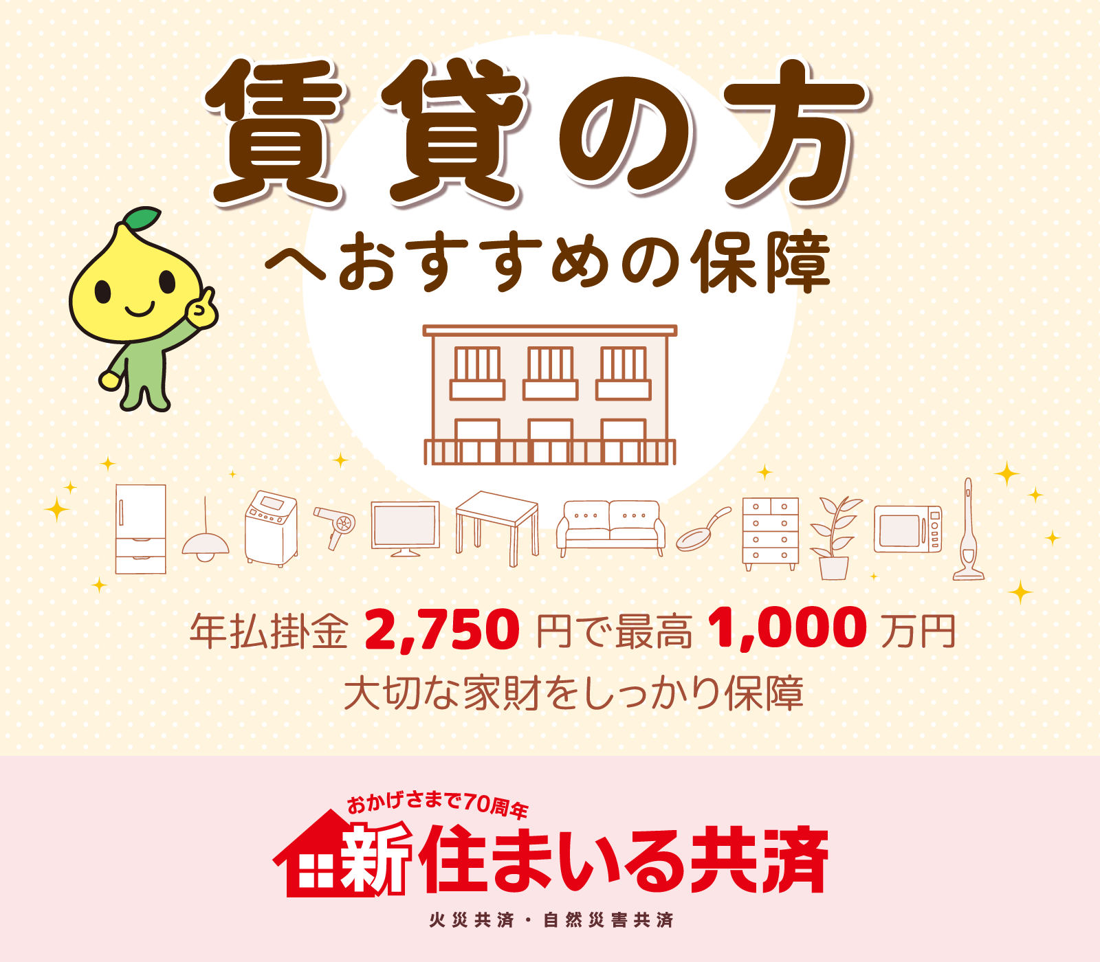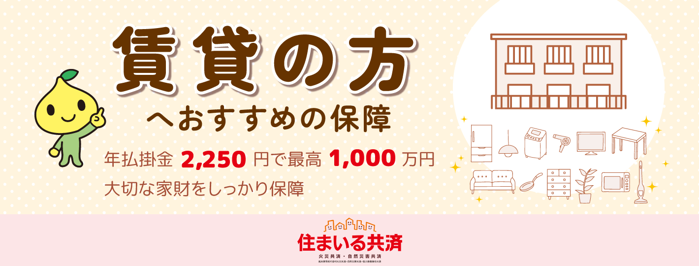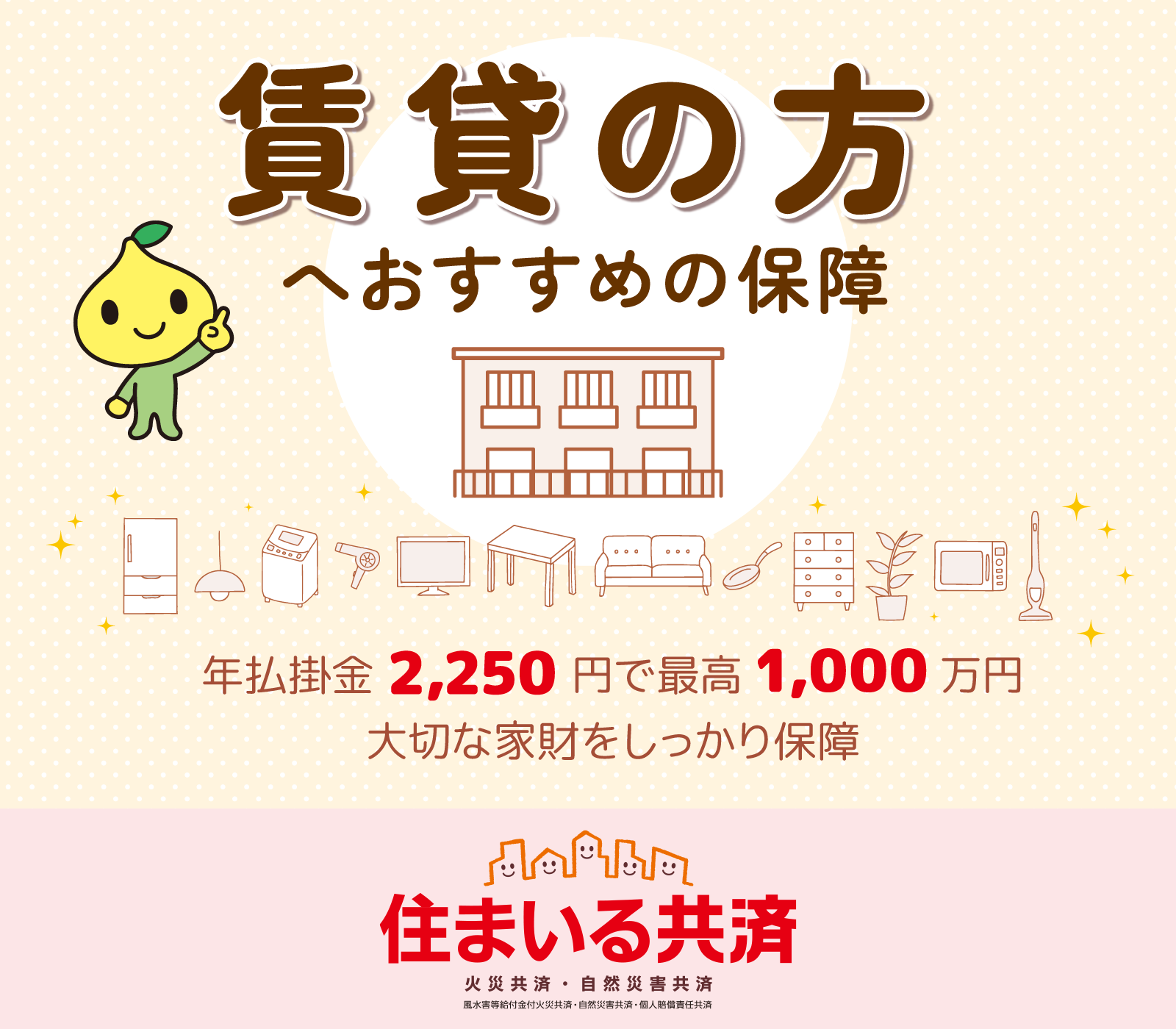 ただし、家財の損害に関しては、借主が負担することとなり、その際の保障として備えがあれば安心です。